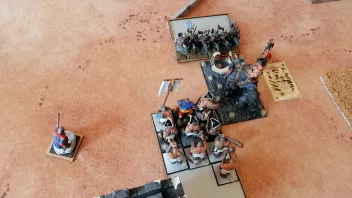 Meine zweiten Söldner stelle ich ziemlich feist an die kleine Mauer und bitte damit sowohl Ali Baba und die 40 Klankrieger