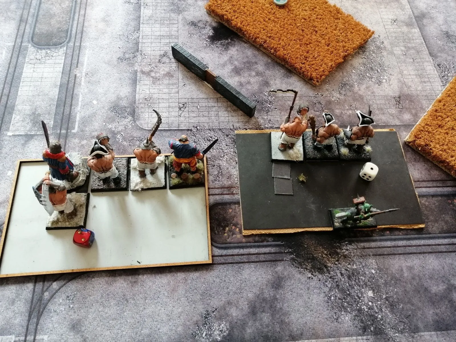 Von Rechts nach links: Roch Auroch in Milliz, Merc Vets trotz Konter der Hellebarden-Abteilung in die Merc Vets,