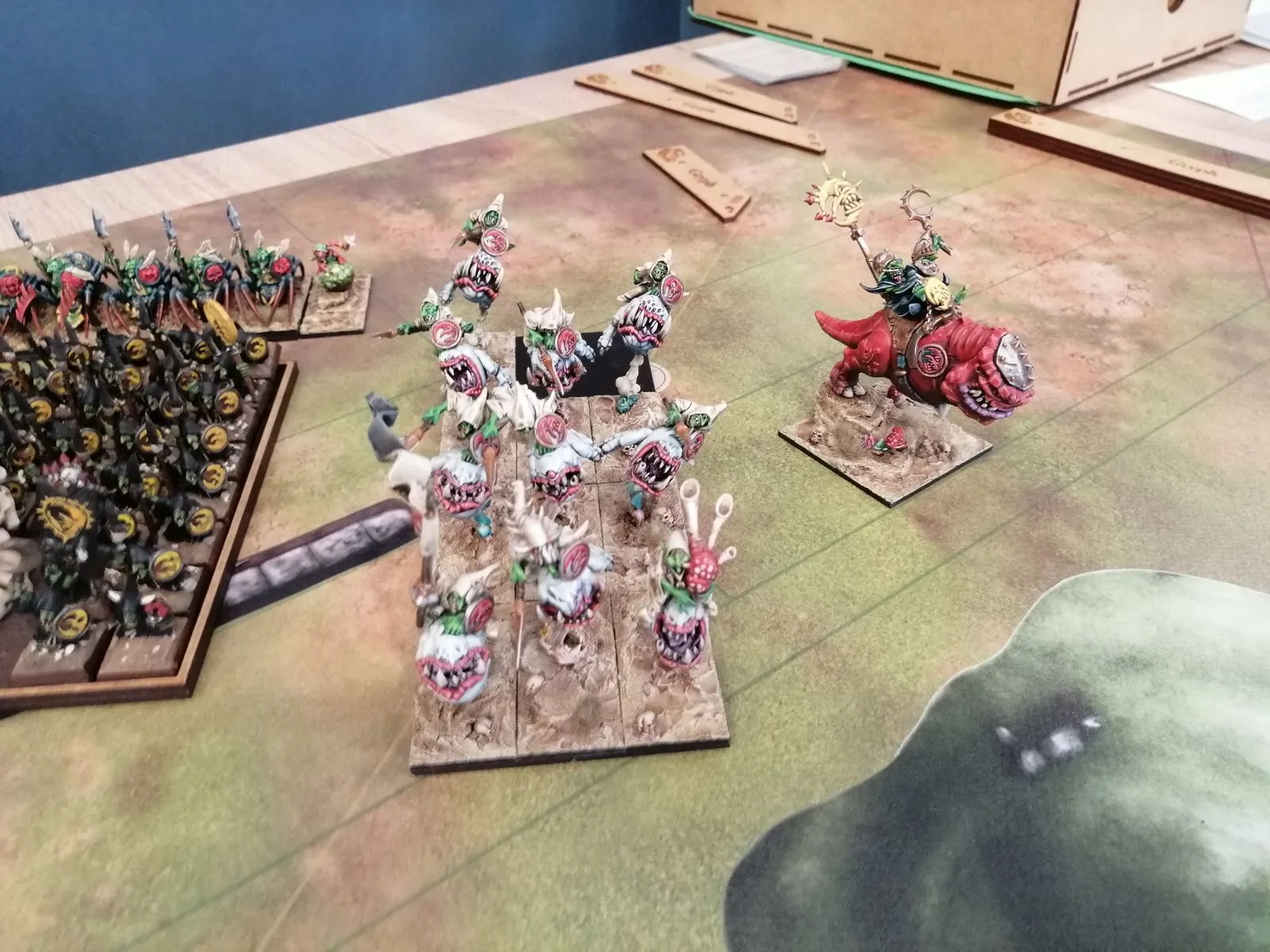 in Infanterie (Knights Forlorn) investiert hatte, der meine Oger überlegen sind und mein Gegenüber hatte auch noch nicht viel Erfahrung mit KOE(eher Zwerge und Echsen).