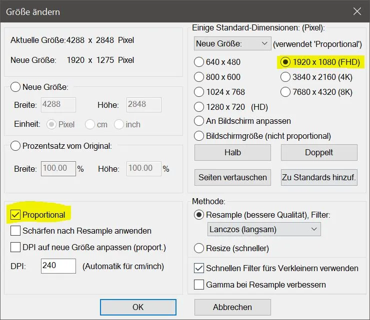 (Spätestens) ab jetzt sollte Irfanview die geöffneten Bilder dann so anzeigen, wie sie später im Netz landen, nämlich 'entsättigt'.