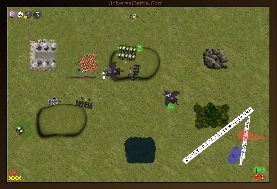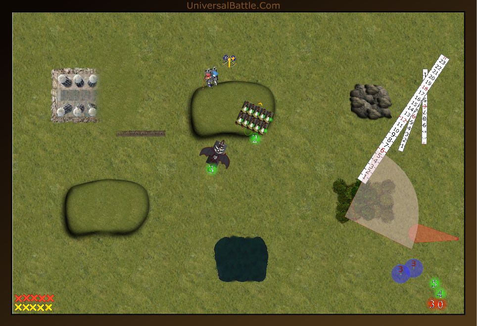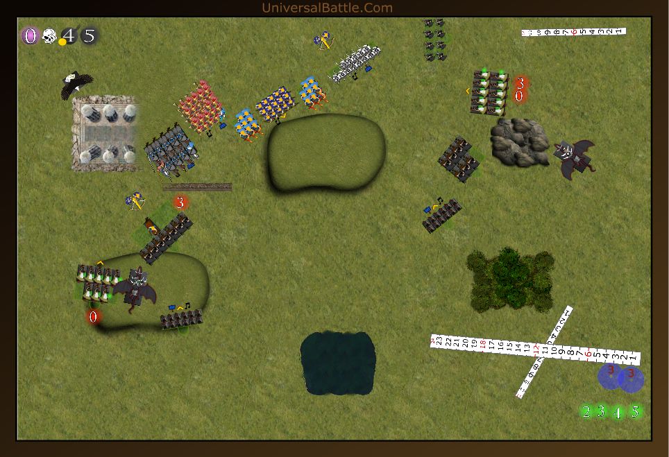 right top stones. Elithmar placed his shooters behind the hill in the middle.