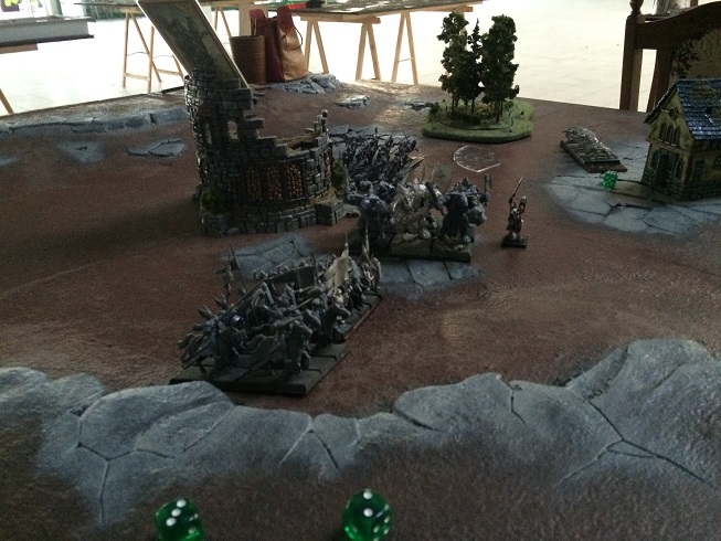 Zu Beginn lief es eher ungünstig für mich, auch wenn meine Harpien und eine Meute der Plünderer seine Waldläufer erschlugen...Ich kam mit meiner Brecher-Einheit (Minotauren natürlich) nicht in eine günstige Position und drohte in der Geister-Scharr zu versumpfen und verlor ringsherum die kleineren Truppen (ein Gnargor, die anderen Harpien, einmal Chaoshunde und einmal Plünderer waren in den ersten beiden Spielzügen futsch), während er stolz auf mich zumarschierte und meine 25 Gors samt Schatten-Magier vom Tisch jagte und meine Überfall-Truppen sich verdächtig viel Zeit ließen, um mal an der Schlacht teilzuhaben!
