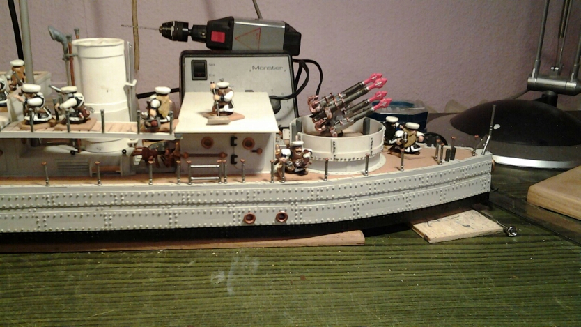 Die Schiffe der Flotte entstehen auch in realistischer Größe. Das oben zu sehende ist die kleinste Klasse und zwar ein Kanonenboot.