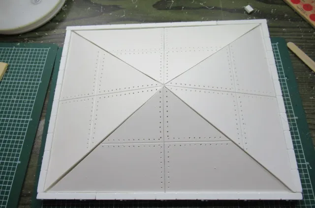 Die Gebäude werden, zusammengesetzt, eine Spielplatte bilden.