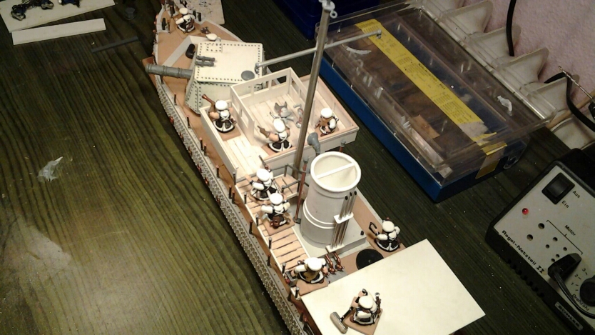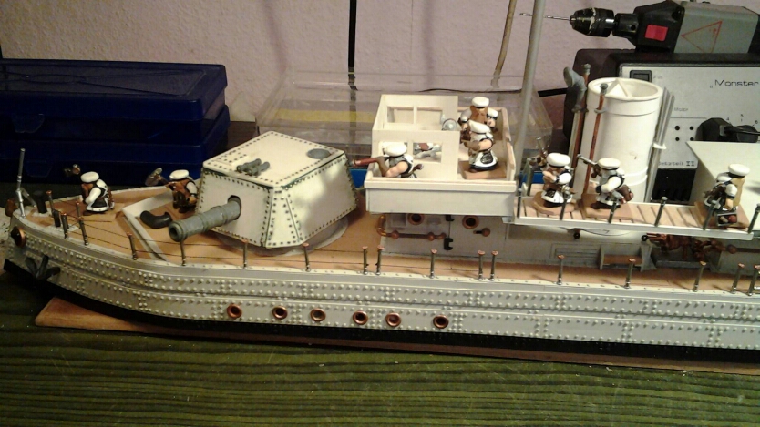 Die Schiffe der Flotte entstehen auch in realistischer Größe. Das oben zu sehende ist die kleinste Klasse und zwar ein Kanonenboot.
