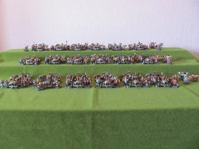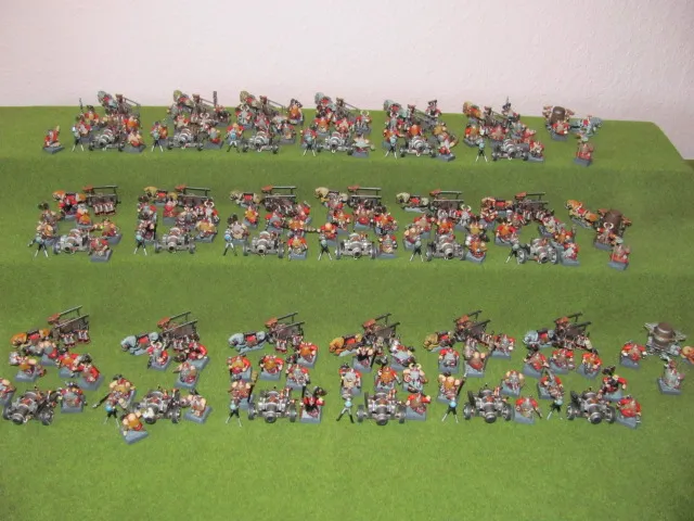 Je nach Edition sind das natürlich 2-3 Artilleristen zuviel für ein Geschütz, deswegen werden immer drei zusätzlich mit einer Zweihandaxt ausgerüstet und zählen bei einem Spiel als Klanis mit Zweihändern.