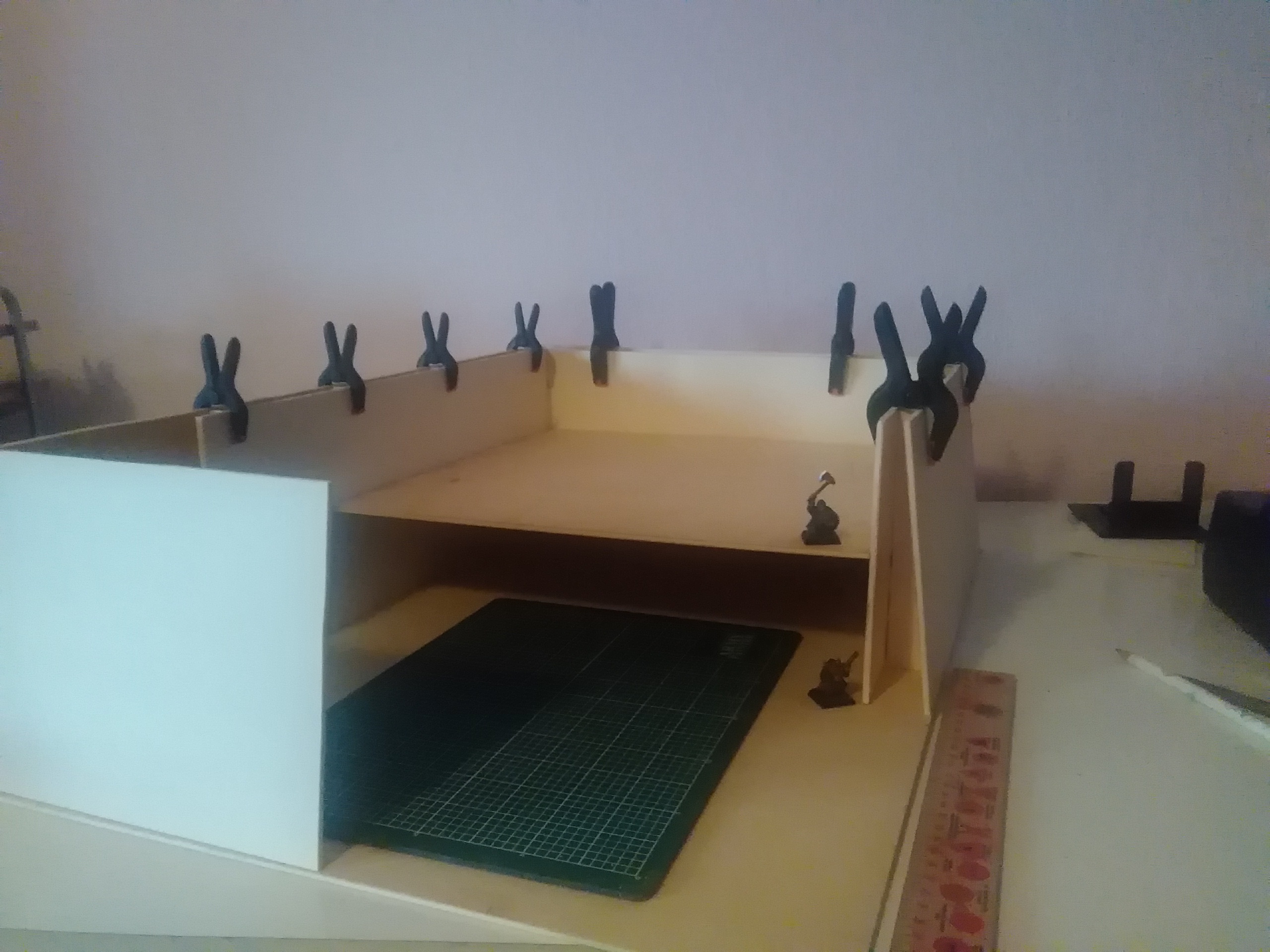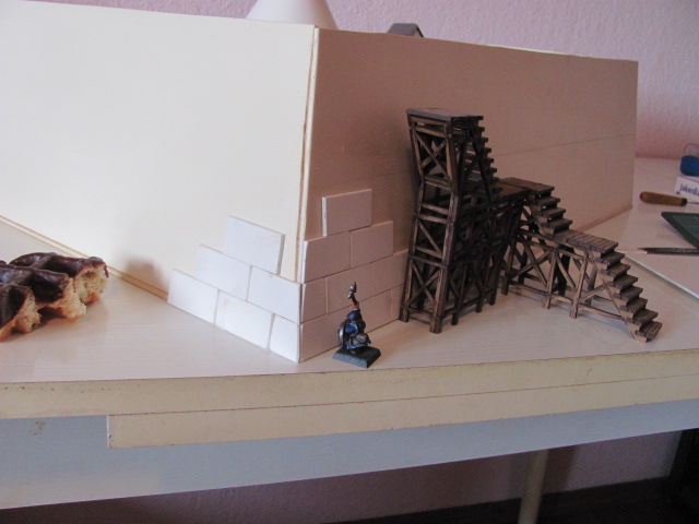 Auf die noch offene Fläche davor kommt die Rampe, die im Zickzack nach oben führt. Hinter die Rampe wird die Kerkeranlage eingebaut.