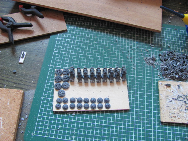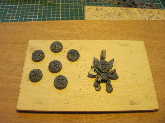 Inzwischen hab ich meine Bitkisten durchwühlt und hab Brauchbares gefunden. Ein stilisierter Zwergenkopf eines Feldzeichens der Klankrieger wird die Wandverzierung hergeben: