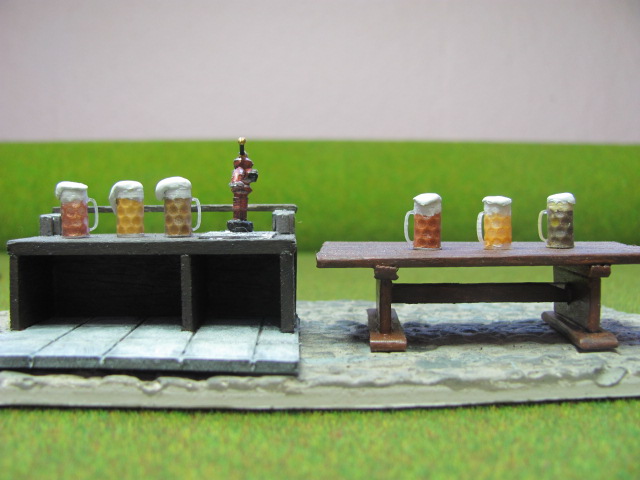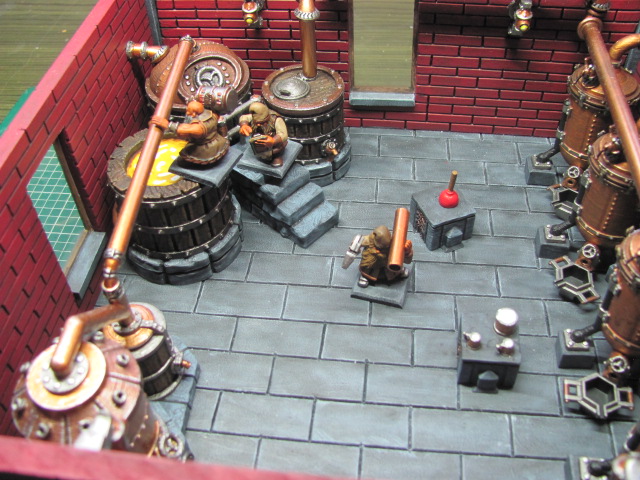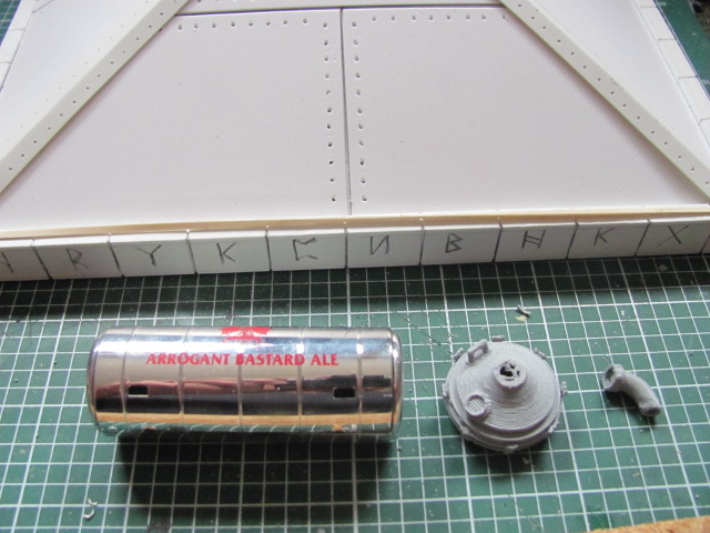 Hier ist das Dach geklebt und Teile des Brauwassertanks schon zurecht geschnitzt: