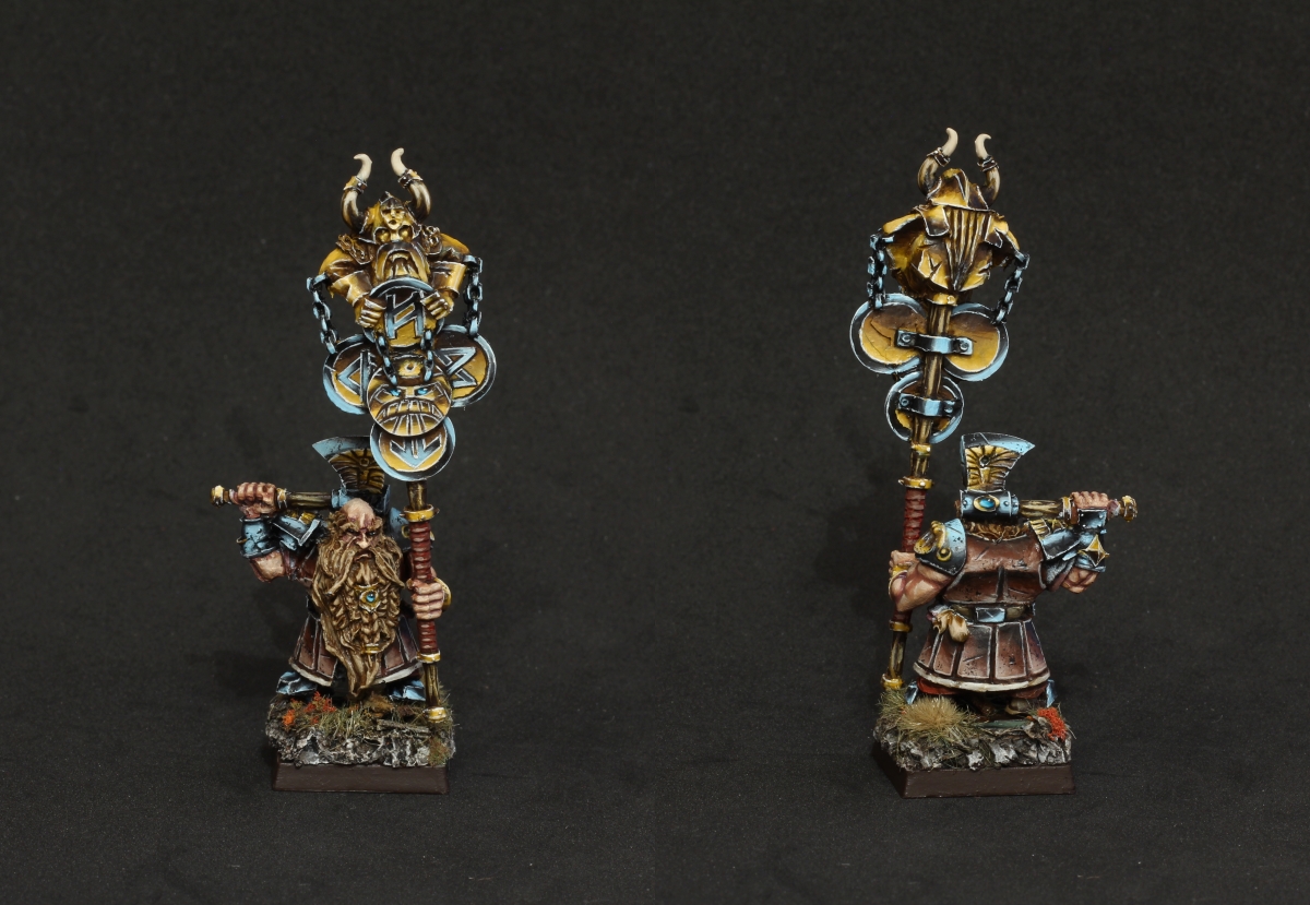 Übers Wochenende habe ich bei meiner ersten Kanone ziemlich große Fortschritte gemacht. Bevor ich begonnen hatte sie zu bemalen, hab ich zunächst nach NMM Bildern von zwergischen Kriegsmaschinen im Netz gesucht, aber keine brauchbaren Bilder gefunden. Im Nachhinein kann ich mir auch vorstellen warum. Derartig viele kleine Flächen die mit gegenläufigen Verläufen bepinselt werden müssen, können schon nerven. Hier und da gibt es auch sicher Stellen die man anders hätte lösen können oder müssen, aber was solls. Der Gesamteindruck passt! Nur die großen Flächen im Frontbereich der Kanone wirken noch sehr leer. Da kommt vielleicht doch noch das ein oder andere Bit aus der Box zum Einsatz. Vielleicht bastel ich mir sogar noch ne kleine Mauer aus Geröll und Schilden. Mal sehen. Ich hoffe euch gefällt sie und bin wie immer für Kritik und Anregungen dankbar.
