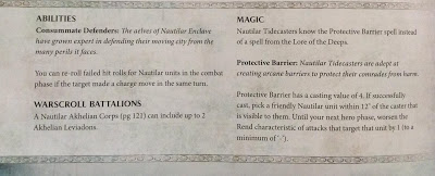 How do the Namarti fight despite being blind? Thanks to a lifetime of specialised training, they can detect minute vibrations in the ethersea – the mystical phenomenon that accompanies the Idoneth Deepkin into battle – and detect their foes just as well as any aelf that could see.