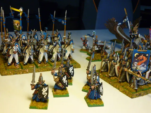 Ist schon ne coole Armee - die ich auch noch, in nicht ganz geringer Zahl, hier rumstehen hab. Jede Einheit bekommt ein eigenes Farbschema - da kann man mal richtig in die Farbtopfkiste greifen![]()
