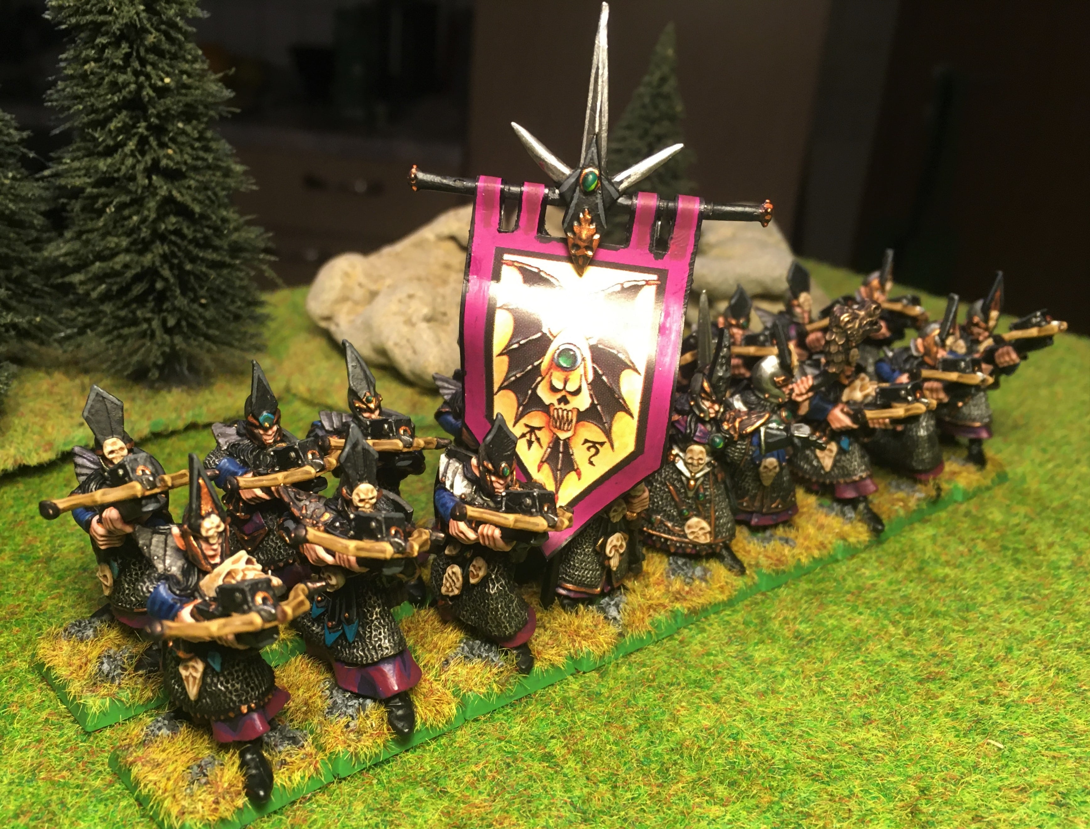 Da darf ich nun (mit einigen Jahren Verspätung) nochmal Alp of Chaos danken, der mir mal die mir noch fehlende Schützenvariante zugeschickt hatte und die ich nun aus dem halb-bemalt Zustand holen durfte (ist der ganz rechts vorne) - Merci !!