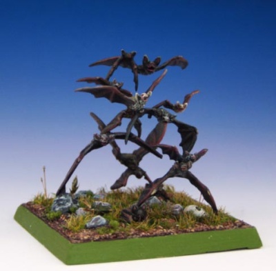 • Also ein paar Vampirberichte findest du in meinem Fred im blauen Forum. Dort hab ich eher angefangen Berichte zu schreiben. Die beste Variante für genügend Vampirfledermäuse sind Ghule auf nem 40er Base mit Flügeln. Dazu nimmt man welche aus der Vargheist/Gruftschrecken Box. Eigentlich sind nur die Championflügel geeignet, aber die großen Flügel kannst du notgedrungen auch nehmen. So hast du 10 Fläuse für 20 Euro. Dann lohnt auch die Vampirkraft. Battlefield Berlin hat auch extra kleine Flügel für wenig Geld.im Angebot.