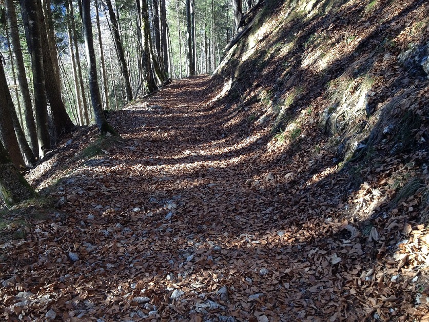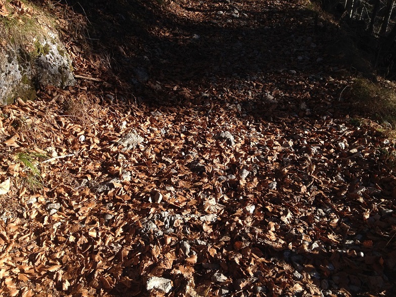 Und zur Base: Da war ich heute hier im Urlaub wandern und muss tatsächlich an dich denken, Merrhok. ^^ Der Wanderweg von der Alm runter ins Tal ist komplett voll mit Blättern. Habe extra ein paar Bilder gemacht. Sieht ja fast so aus, wie deine Bases. Vielleicht ist das ja eine Inspiration. Eventuell könnte man das Base in braun bemalen und noch ein paar Steine dazu machen. (Da ich aber weiß, dass all deine Bases grüne Ränder haben, wird das dann zum Rest nicht passen...)