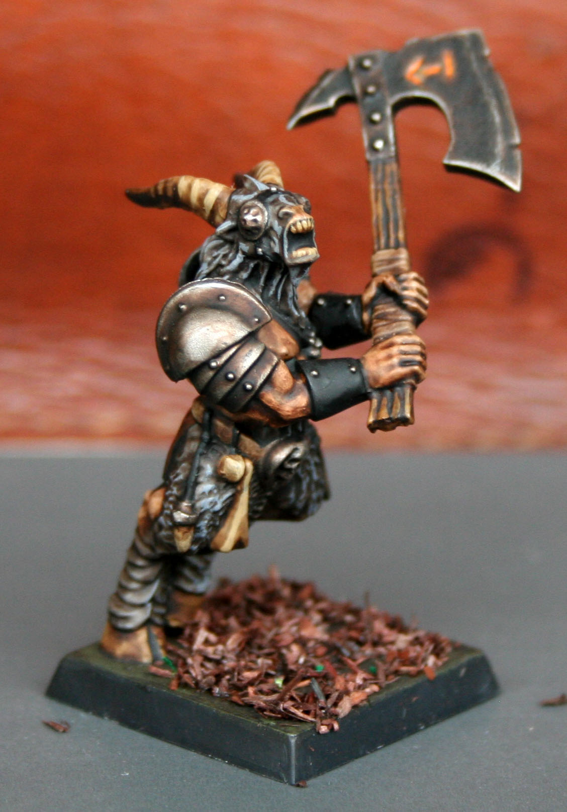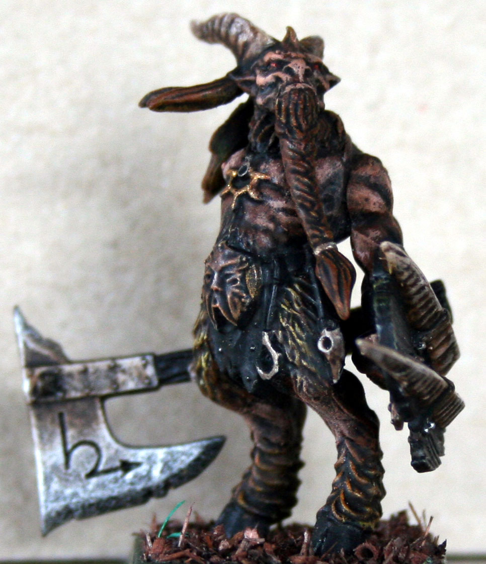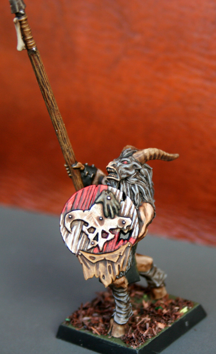 Gurlak soff gierig aus seinem Trinkschlauch. Der Wein rann ihm aus den Winkeln seines Mauls und sickerte in den dichten, verlausten Pelz, um ihm danach über seine tätowierte Brust zu laufen. Der stattlich gebaute Caprigor hatte ein gutes Jahr und es schien kein Ende in Sicht. Für den bevorstehenden Kampf der Häuptlinge galt er als der Favorit und er wusste es nur zu genau. Seine Gebärden kündeten schon vom Machtanspruch eines Großhäuptlings, welcher die vereinten Herden gegen die Menschen führen wollte. Er war sich sicher, dass dies auch Merrhoks Plan sei und der Grund war, weshalb er die Stämme hier versammelt hatte. Die Erklärung des jungen Häuptlings stand noch aus, aber lange konnte es nicht mehr dauern. Und dann würde er allen Herausforderern die Bocksschädel zurechtrücken. So etwas wie ein Schmunzeln zuckte in Gurlaks linken Maulwinkel. Allerdings nur für einen kurzen Augenblick. Keiner mochte es im Rauschen des ringsum stattfindenden Gelages bemerkt haben. Keiner, außer Einem. Hurrlok war ein junger, aufstrebender Bestigor. Was ihm an Erfahrung und Rückhalt in der Herde fehlte, machte er mit besessenem Kampfeswillen und unermüdlichem Ehrgeiz wieder wett. Seine Bewunderung für Gurlak war groß und er wusste, dass er eines Tages in dessen Hufstapfen treten würde um unter der Führung der Vereinten Stämme die alten Jagdgründe zurückzuerobern und das Middenland von der menschlichen Plage zu befreien. Ob Gurlak dann noch am Leben wäre? Nun, die Zeit würde zeigen aus welchem Holz er geschnitzt war. Hurrlok war sich jedoch einer Sache sicher... dass er selbst seinen Häuptling überdauern würde.Hurrlok, der Berührte: