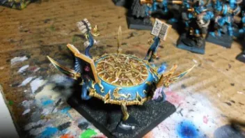 @Sero: Was die Haltung angeht... Der zieht eben grad das Schwungbein nach vorn/oben (zur berühmten, dynamischen "hoch das Bein"- Pose). Da die Bewegung noch nicht vollendet ist, sieht es ein Wenig danach aus als ob er mit beiden Beinen geschlossen abspringt. Dem ist aber nicht so. Nur ein Huf berührt den Boden. Der Andere ist nach hinten abgeknickt und auf dem Weg nach oben. Alles in Allem ist die Pose schlüssig (und GW-typisch). Jener hier bzw. hier hat die selbe Grundpose.