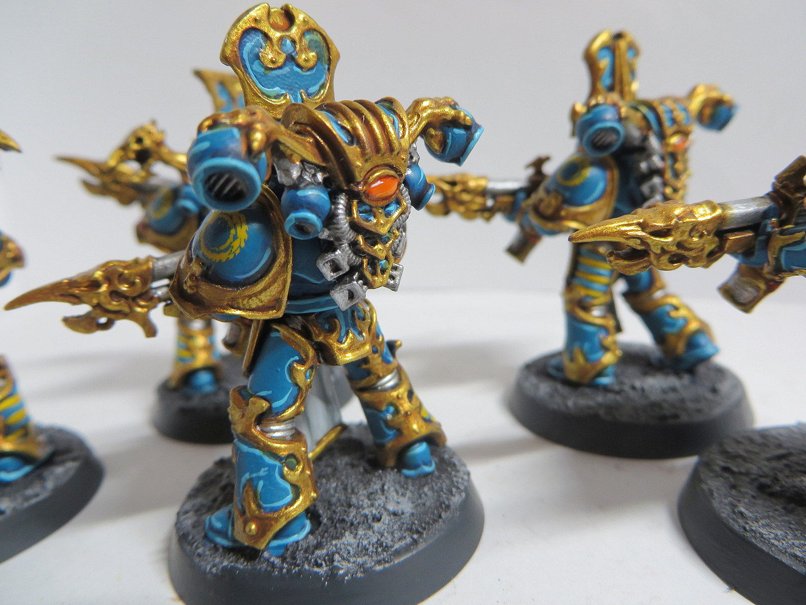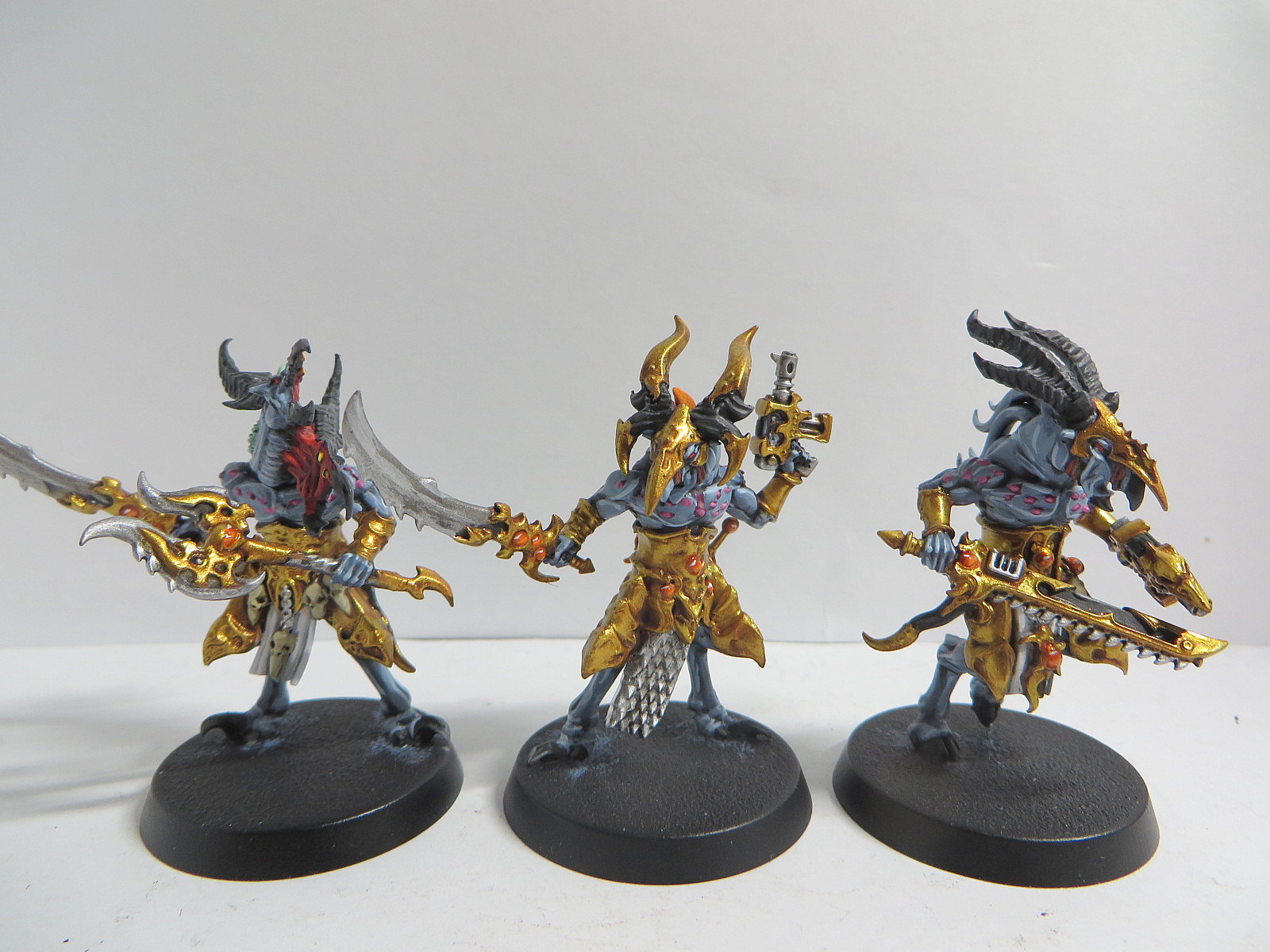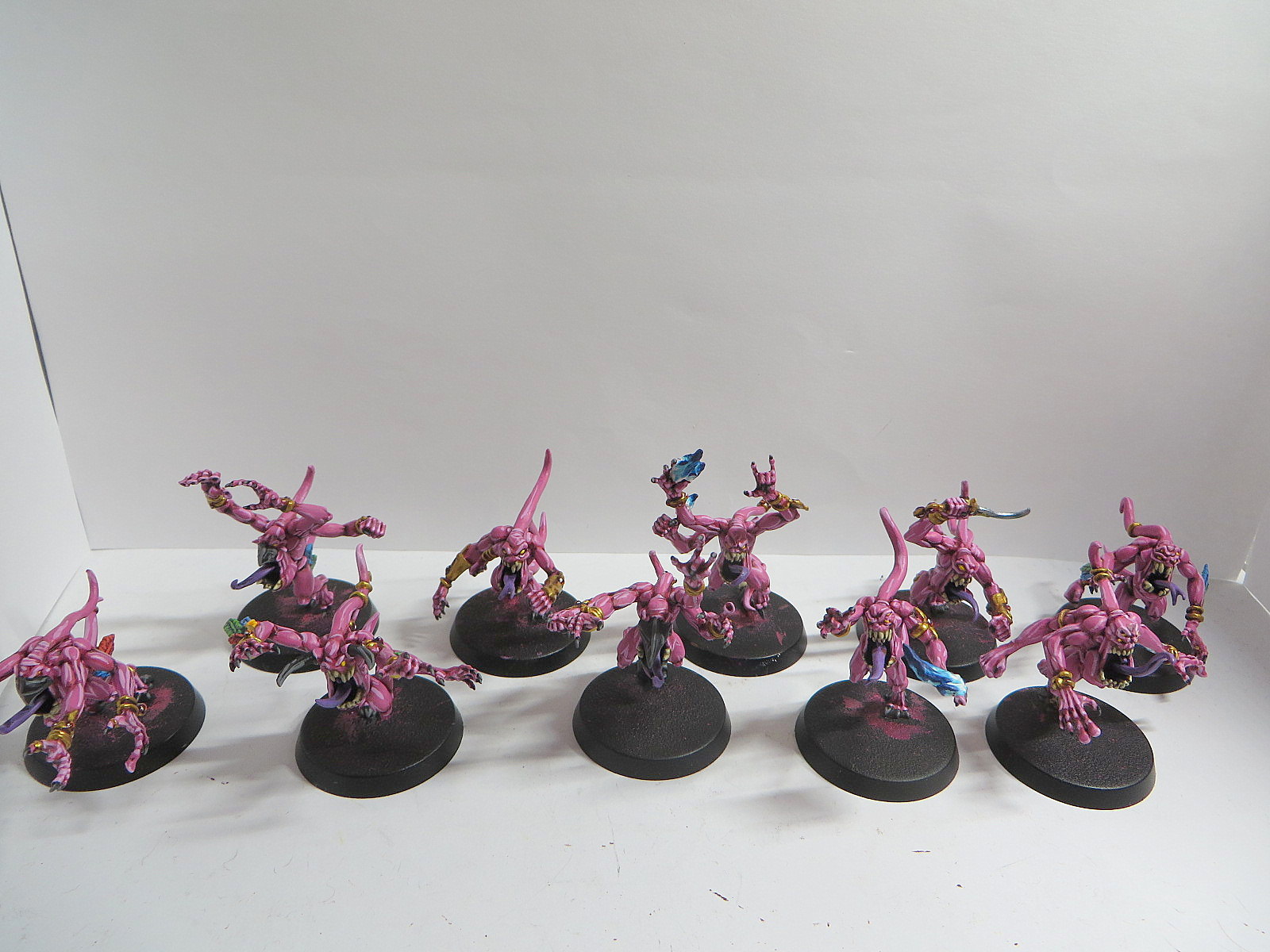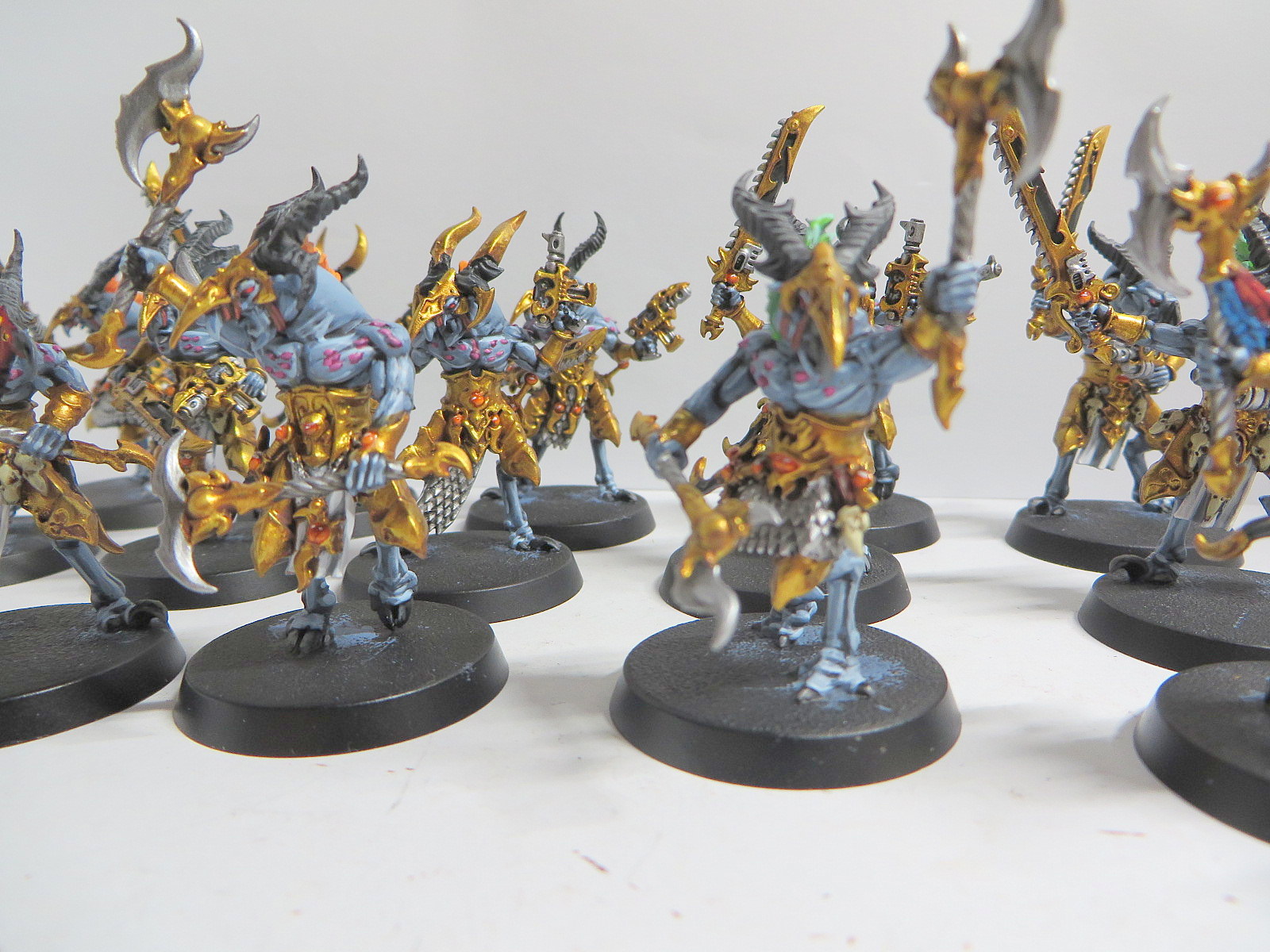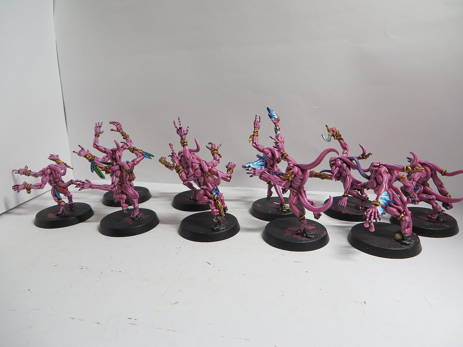 Und das Feuer hab ich bei den Rosa Horrors blau, damit es einen schönen Kontrast darstellt. Die andere Tzeentchdämonen sind ja hauptsächlich blau-weiß, da ist das Feuer dann 'feurig' (wieder als Kontrast). -