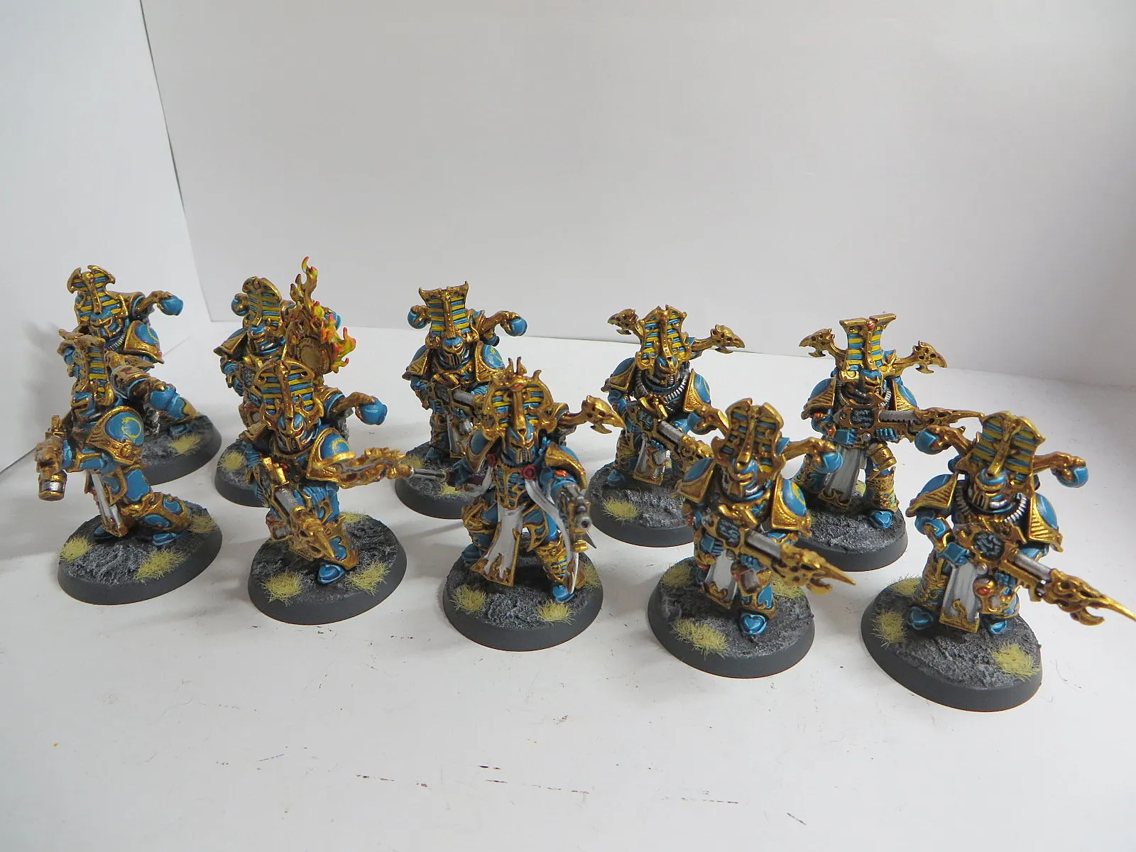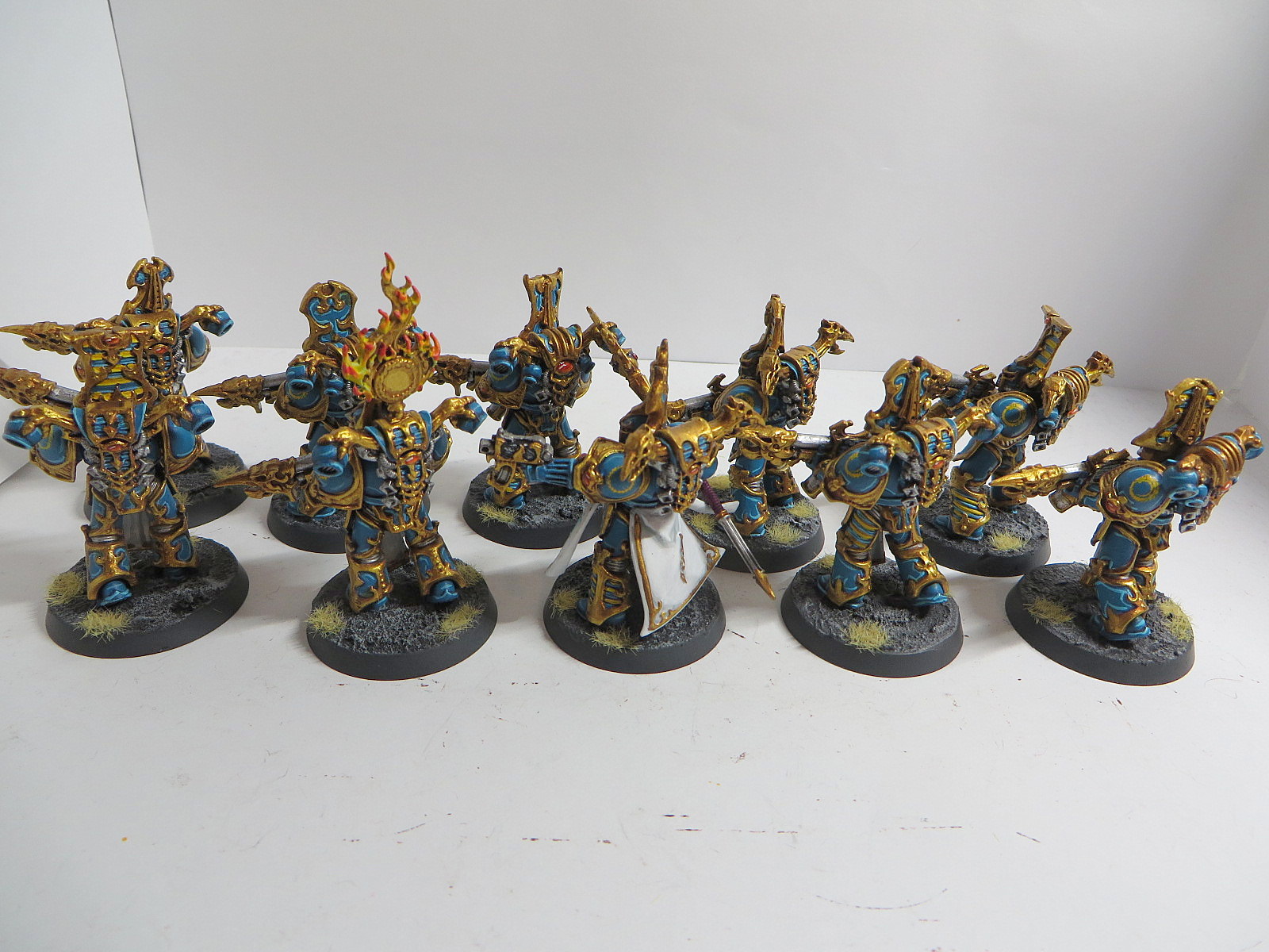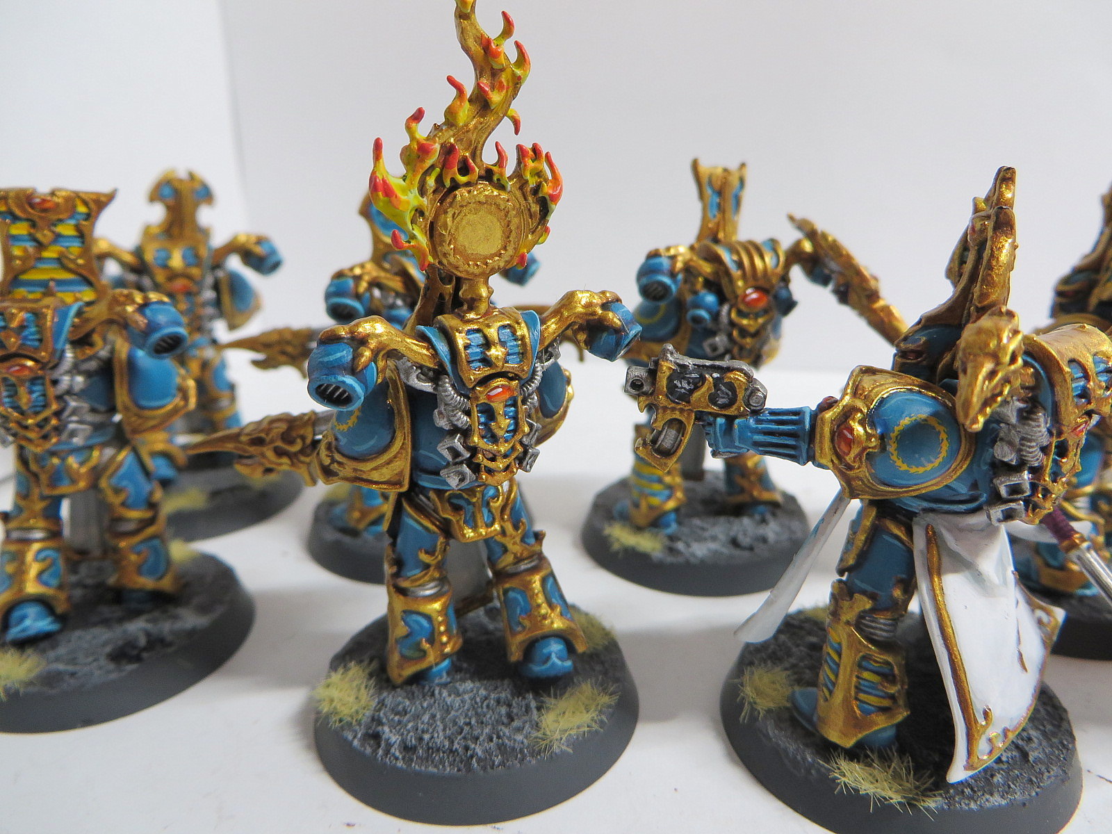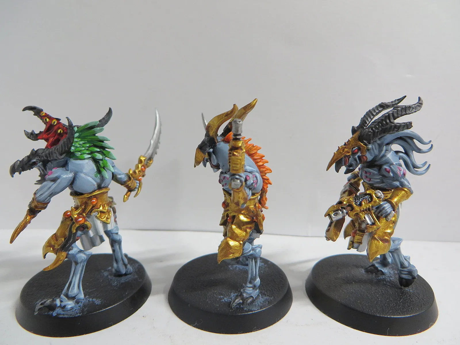 Und das Feuer hab ich bei den Rosa Horrors blau, damit es einen schönen Kontrast darstellt. Die andere Tzeentchdämonen sind ja hauptsächlich blau-weiß, da ist das Feuer dann 'feurig' (wieder als Kontrast). -