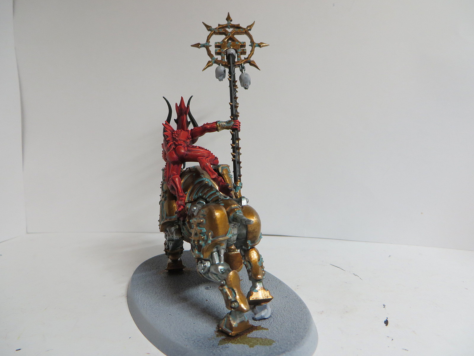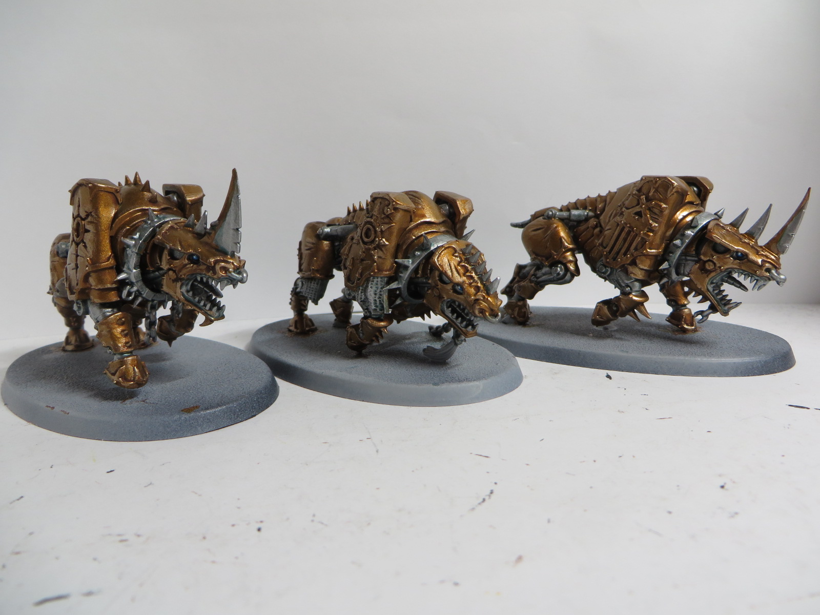 ad Bases: Bei allen Chaoten (CSM, Dämonen, AoS) habe ich Astrogranite und Astrogranite Debris verwendet. Dies dann mit Dunkelgrün getuscht und grau gebürstet. Die Baseränder sind mit Black Grey von Vallejo bemalt.