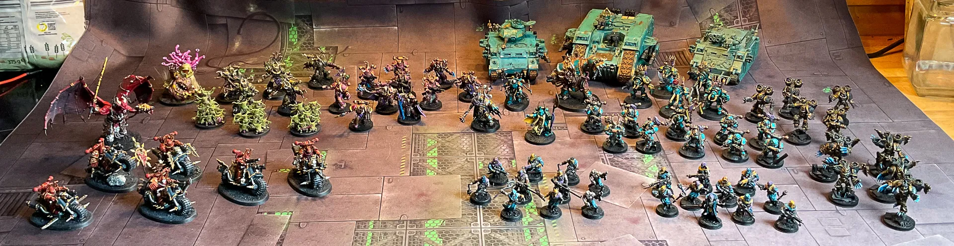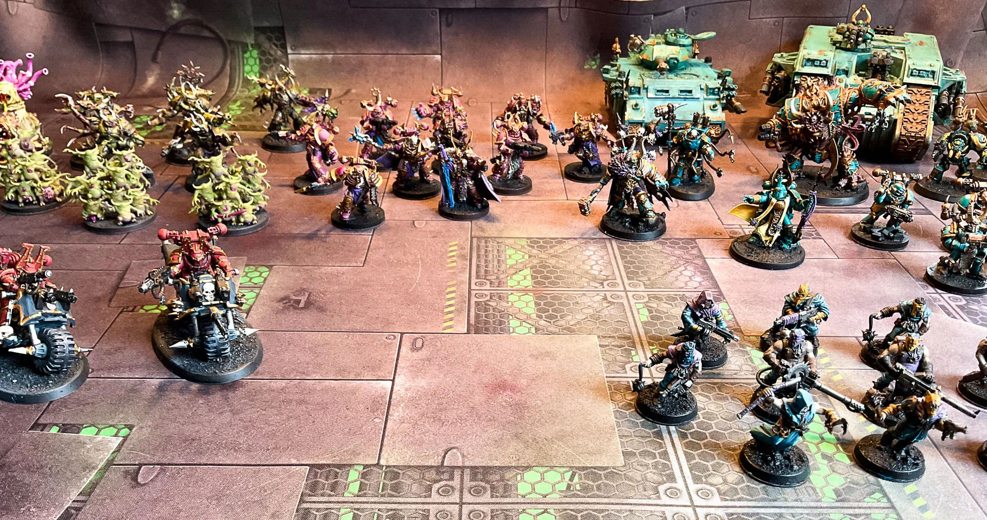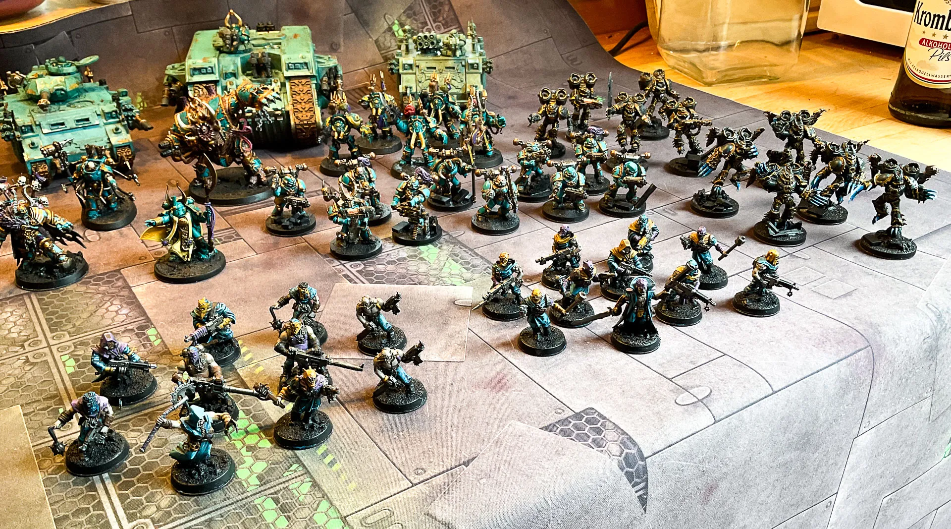 PS: Auf den Fotos sind ausschließlich die bemalten Einheiten. Die Chaos-Horden sind natürlich viel umfangreicher...