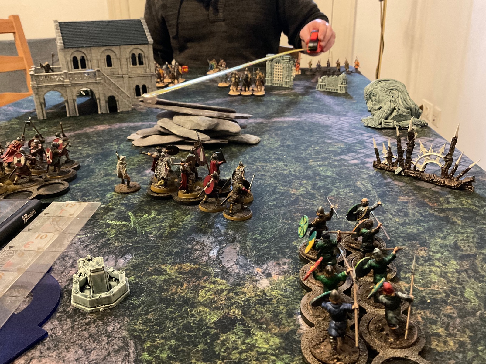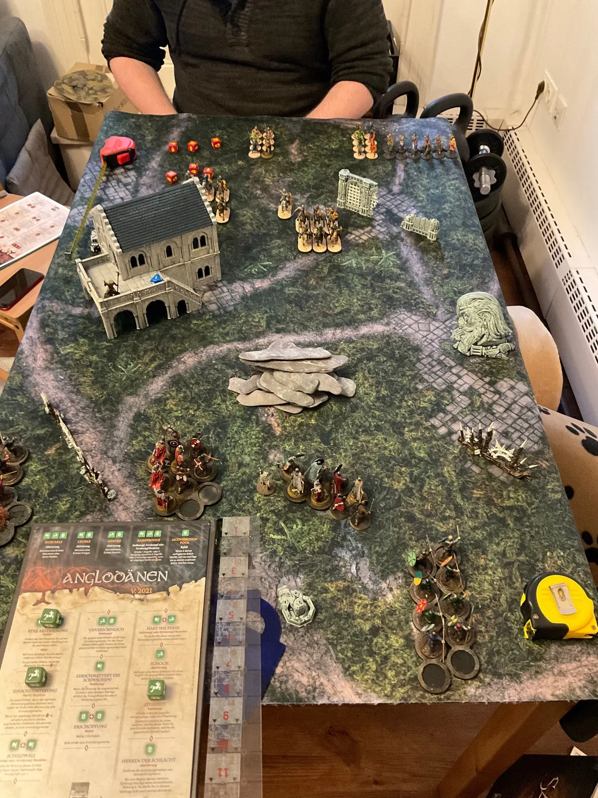 Schöner Bericht. Wieso seid ihr am Anfang so weit voneinander entfernt? Die "normale" Aufstellung bei Saga ist eigentlich von langer Seite zu langer Seite. Und dann ist meist zwischen den Aufstellungsfläche eine Entfernung von L (12Zoll). Wenn man weiter weg spielt, kann man die Einheiten auch gratis bewegen (ohne was aufs Battleboard zu legen) und eine Bewegung machen, die einen Näher zum Gegner bringt, aber nicht innerhalb von L. Wenn man sich näher steht, gibt es viel mehr Aktion und es hängt nicht alles von einem Nahkampf ab bzw von der Schussphase.