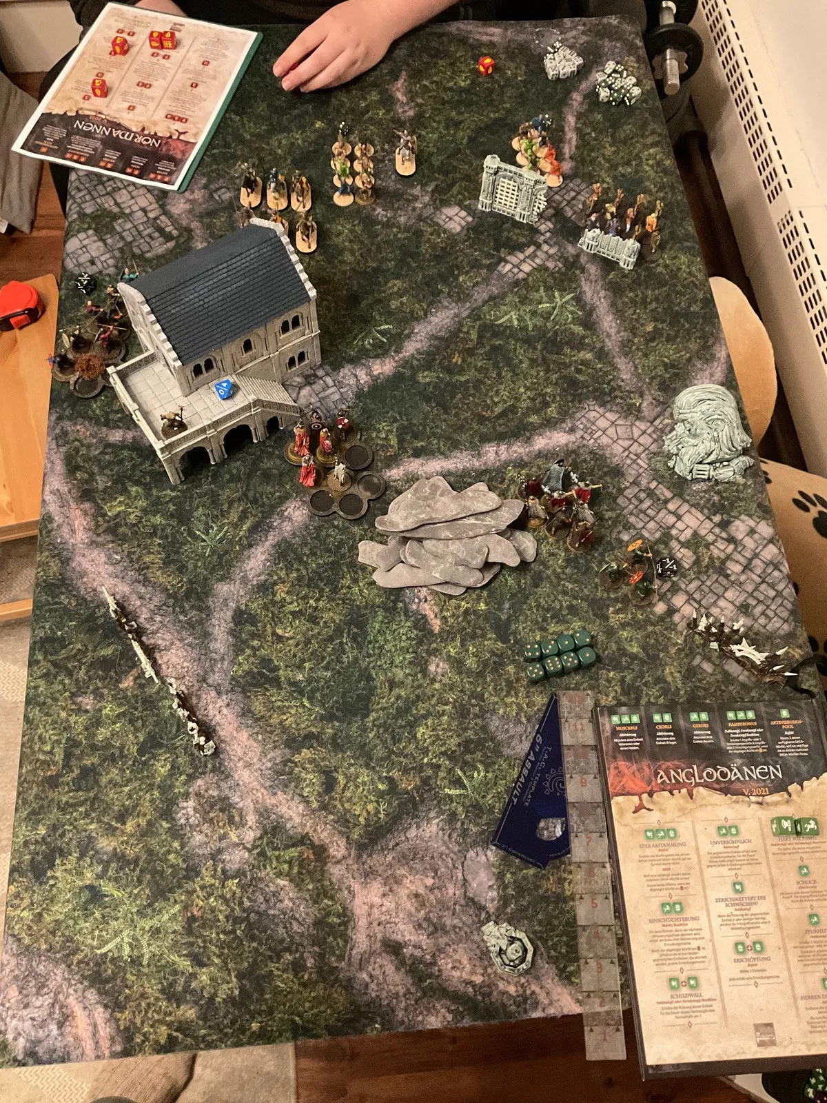 Zu dem obigen Spiel: Die Strategie und Taktik der Anglo-Dänen ist, den Gegner mit Ermüdungs-Markern zu überhäufen und sich langsam ranzutasten. Wenn der Gegner dann Müde genug ist geht es in die Nahkämpfe.