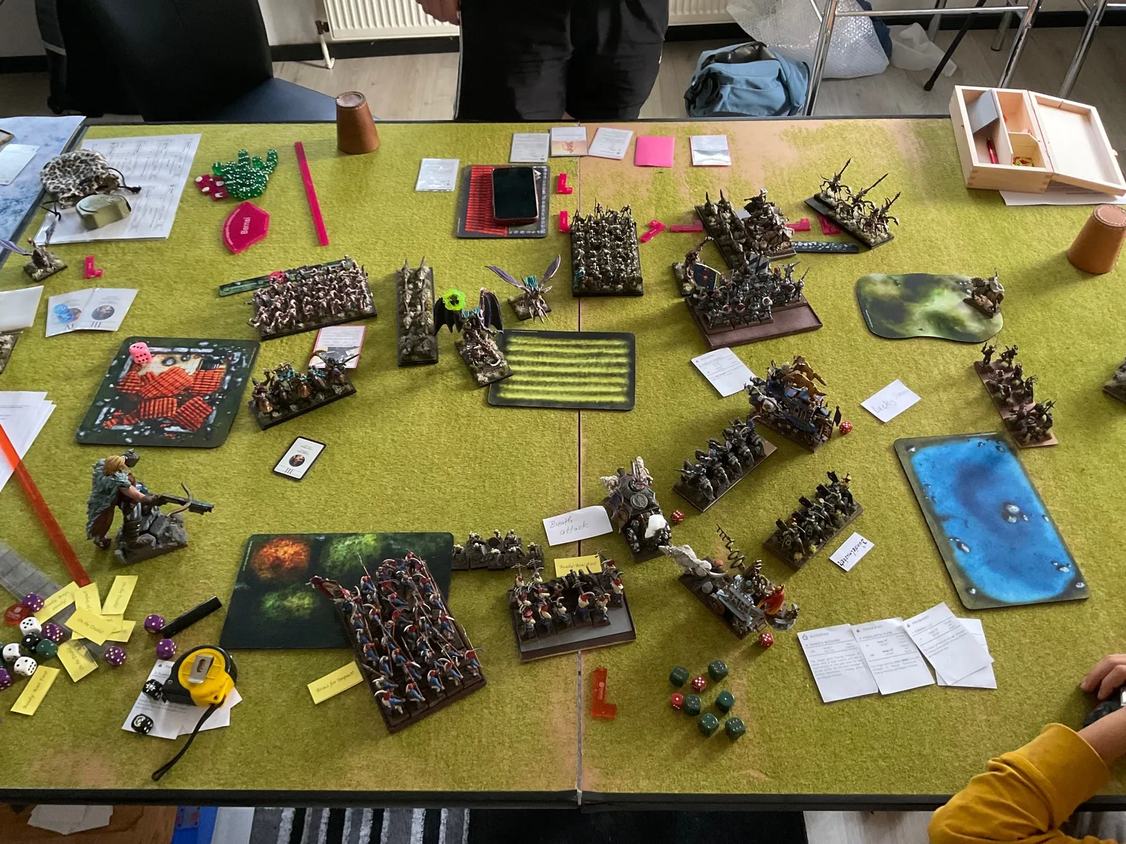 Zudem bin ich echt fertig von der Reise, den zwei vorherigen Spielen und der Hitze. Außerdem weiß ich, das Bernsi am Tisch rumschreien wird, wenn mir etwas gelingt und/oder ihm etwas misslingt. Mich stresst das immer sehr, mag das nicht. Bernsi mag ich aber trotzdem - wir müssen uns halt nehmen, wie wir sind. Bin ziemlich sicher, dass ich ihm auch auf die Nerven gehe, indem ich meine Armeebücher nicht auswendig kenne.