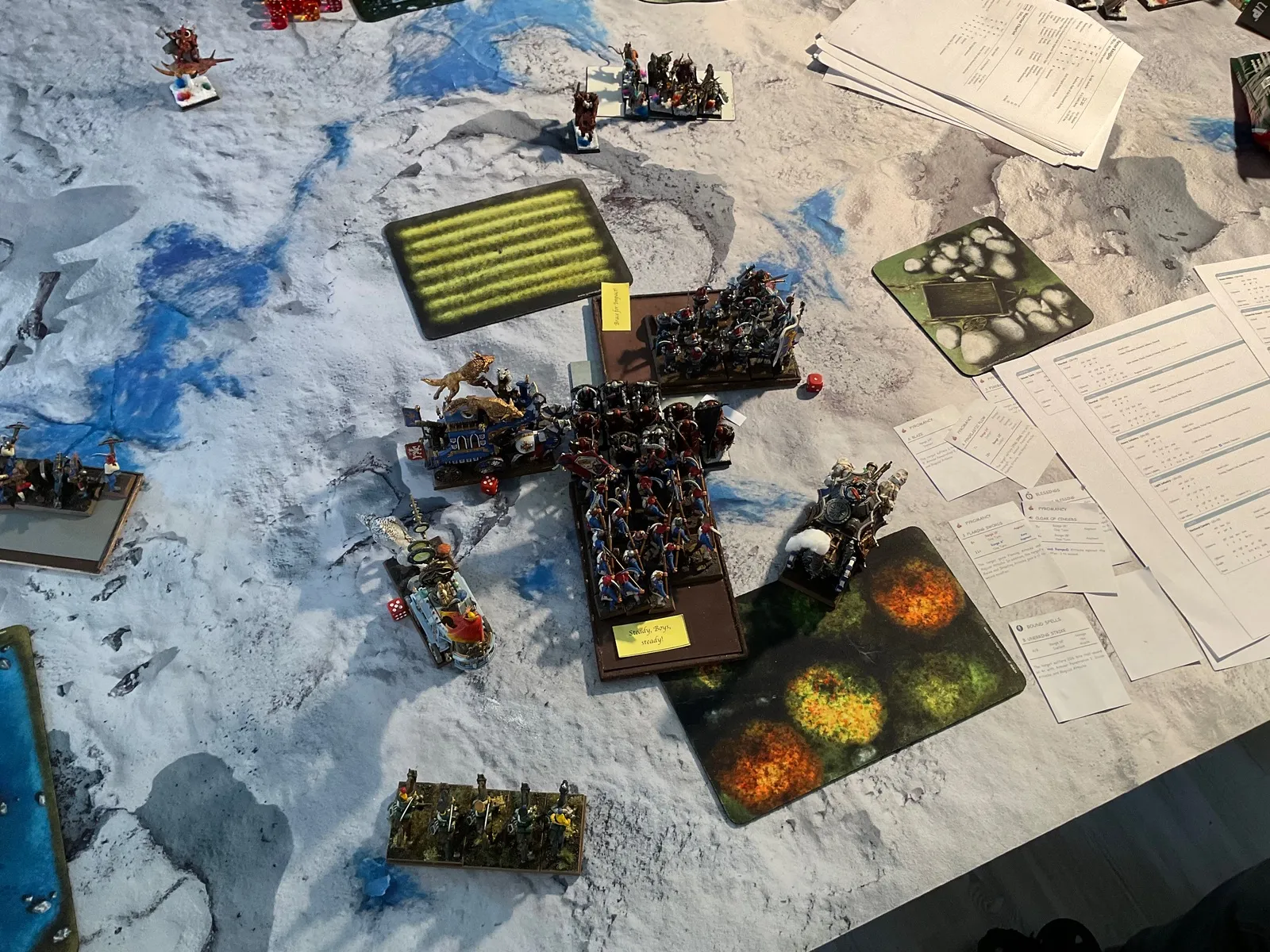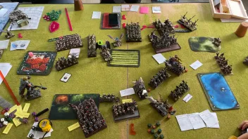 Die Arcane Engine war neu dabei. Wenn die richtig steht, ist die für meine Infanterie eine Lebensversicherung und für den Gegner ein echter Nerver. Ich hatte die Tendenz, die hinter meinen Einheiten aufzustellen, um keinen Charge in das Gerät zu riskieren. Das brachte mir aber echten Reichweiten-Nachteil mit den Dakka-Sprüchen ein. Vorteil jedoch: Mein Magier ist nicht mehr so exponiert wie wenn er in den Armbrüstern oder Milizen mitläuft.