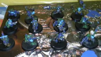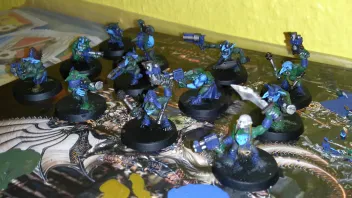 Für die Bases eignen eigentlich immer die klassischen Sandbases, die mit einer beliebigen farbe emalen und heller trockenbürsten. Alternativ bin ich auch ein großer Freund der Korkplatten. Die sind billig und lassen sich super bearbeiten. Einfach schwarz grundieren und mit 2 grautönen trockenbürsten, fertig ist der Boden einer zerstörten Stadt. (ich schneide mir aus den Korkplatten immer kleine Quadrate, etwas größer als die Base, die ich dann zurecht breche, die entstehenden Ecken und Kanten sehen dann nochmal mehr nach "zerstört" aus)