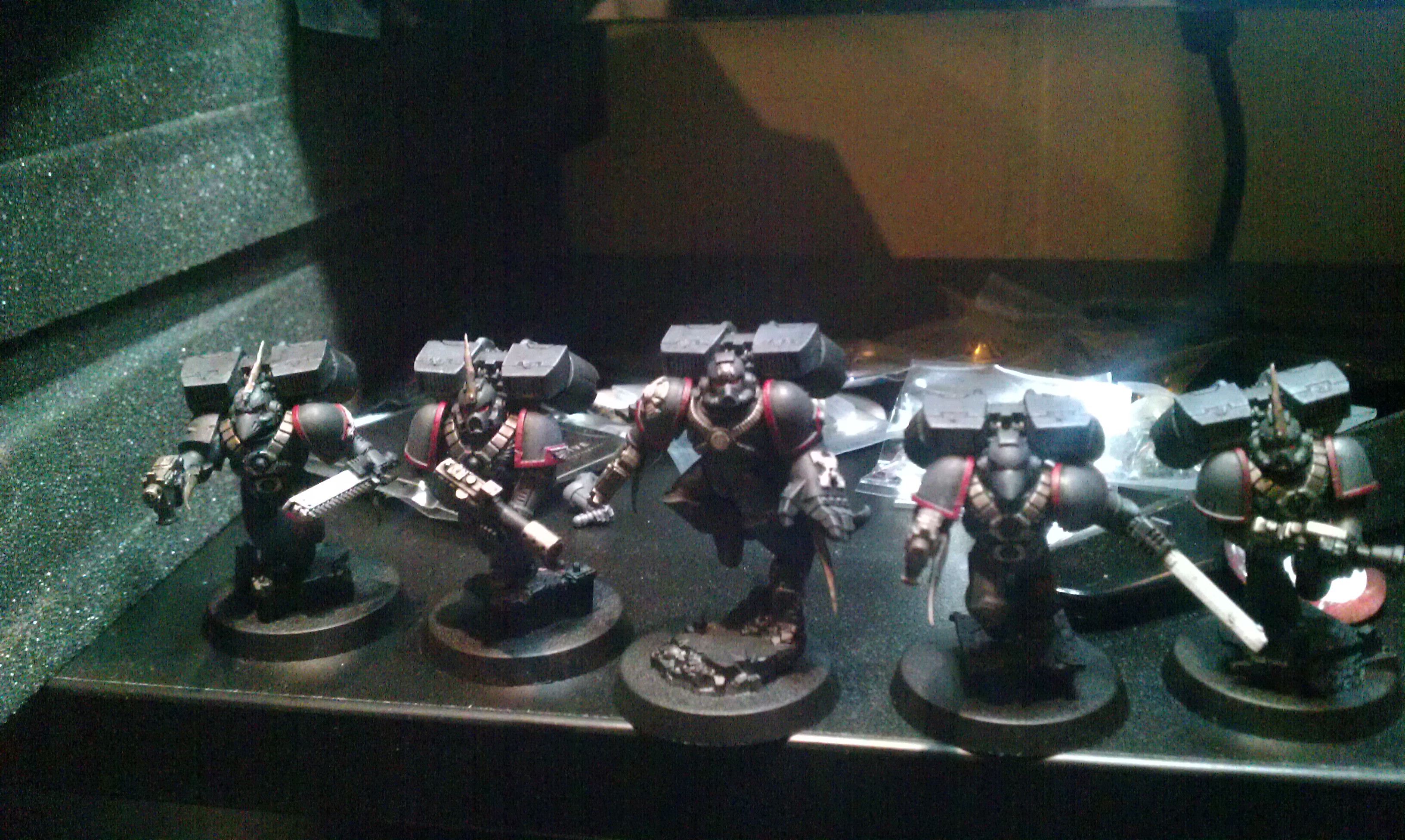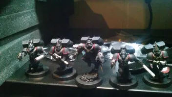 Dazu kommt bis jetzt ein Kommandotrupp der den Regeln der Salamanders besser liegt als denen meiner Fire Angels . Nachdem ich meinen Flammenwerfer Sturmschild Trupp eigentlich nie spiele weil meine anderen Silbernen Marines auch sehr viele Alternativen bieten und ich noch nen Kombiwaffen Trupp hab für meine anderen HQs werden sie den Captain begleiten.