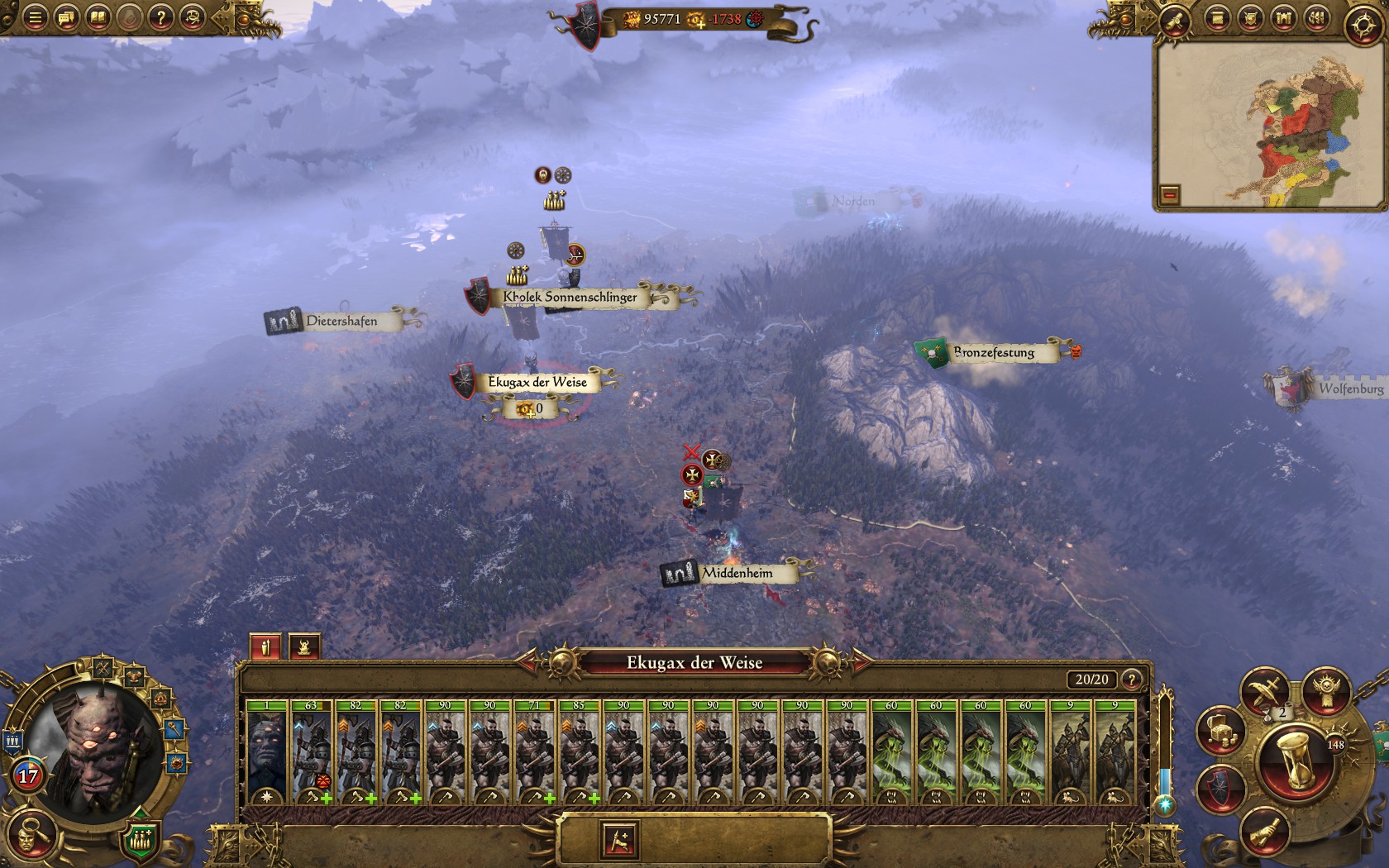 @Elo Mit dem Imperium fand ich es bis jetzt am schwersten, denn deine Gegner sind wirklich überall. Im Norden das Chaos, im Süden Orks und die Grenzgrafen, im Westen Marienburg und die zickigen Bretonen (ja, die nerven menchmal von der Seite) und im Osten Vampire. Dazu hat man dann noch rivalisierende Fürstentümer.