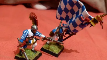 Nun habe Ich schon mal nen halben haufen Ratten bemalt und die ersten Figuren des Imperiums. Ich habe mich bei der Flagge für Bayern entschieden, weil ich.... ähm... Ich glaube weil ich in meinem Lieblingsspiel die Bayern spiele und die Farben gut finde XD Ach ja und ich habe nen Champion des Imperiums. Kein plan wie man spielt und ob der gut ist, mir gefällt er aber. (2 Photos)