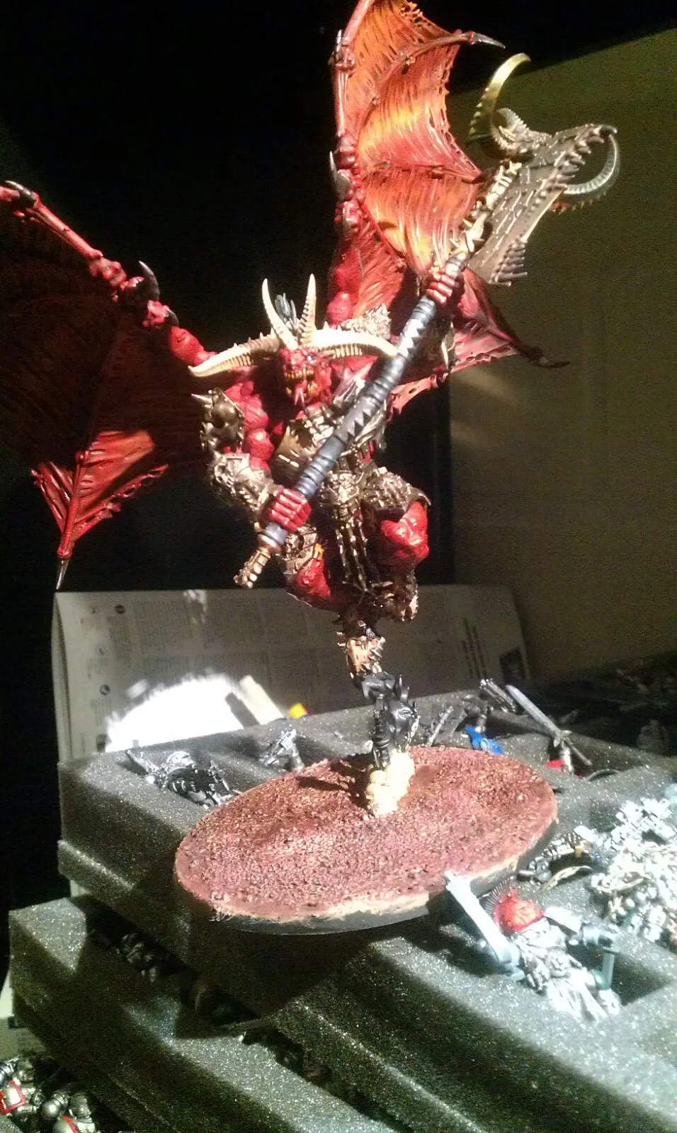 Als Ergebinss erwarb ich einen Blutdämon den ich zum Bloodthirster der Unmäßigen Wut machte. Damit besteht meine Armee bis auf den Dämonen Prinz ( Da fehlt noch das Messing Farbende ) aus einem Fertig gebauten und bemalten :