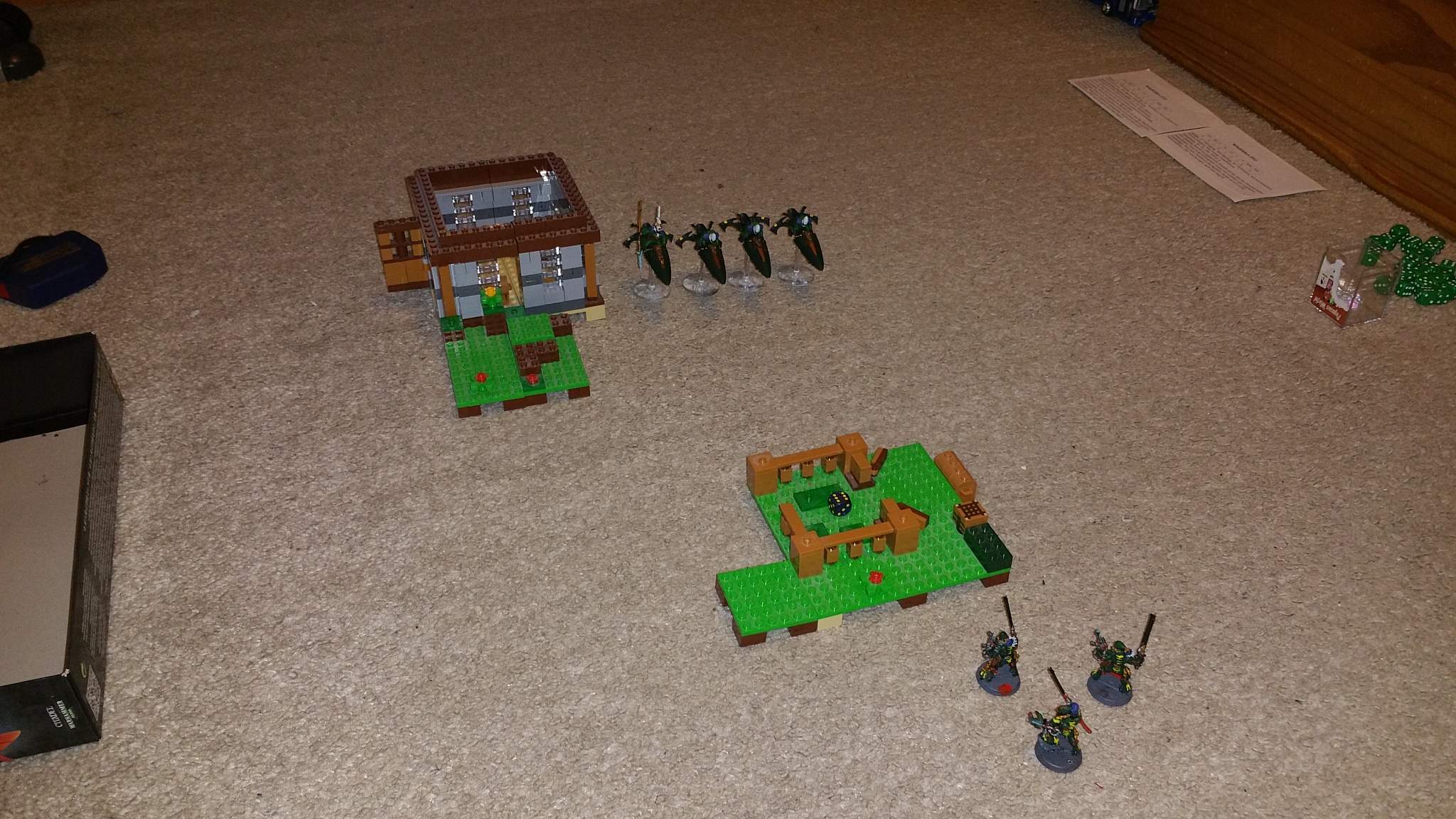 Ich hatte eigentlich gehofft das ganze am Samstag im Shop durchzuführen. Aber das hat leider nicht geklappt. Am Sonntag hatten wir dann mal eine gute Stunde Zeit und haben auf dem Teppich in seinem Zimmer mit improvisiertem Gelände aus Lego gespielt.