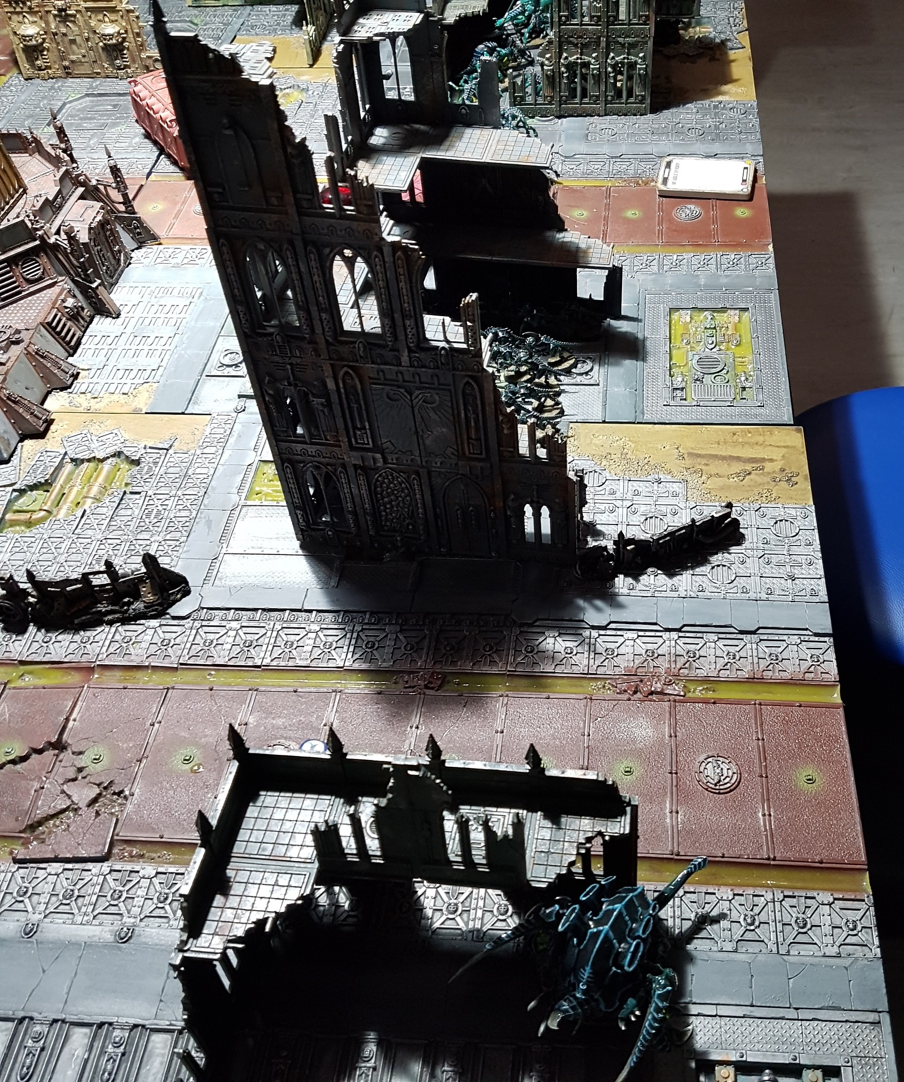 die Valkyrie, der Psyker (im OG man sieht eine Ecke des Mantels) sowie ein 5er Trupp Scions im Untergeschoss Stellung