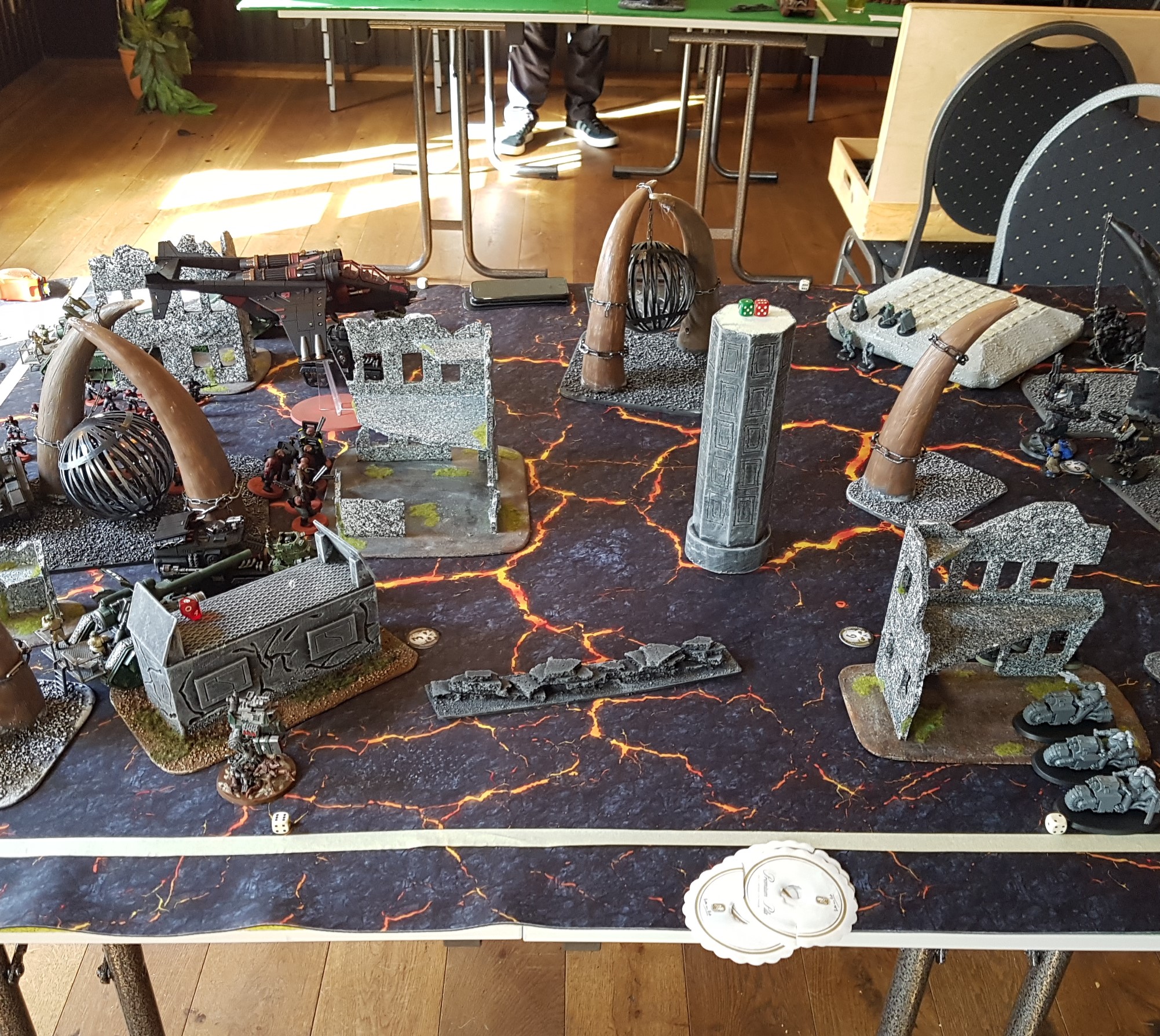 Vergangenen Sonntag fanden sich acht Tabletoper in einem zum beschaulichen Bad Münstereifel gehörenden Kaff äh Dorf ein um in der Gaststätte der Eltern eines der Spieler 40K zu zocken. 6 davon waren auch schon bei der 1. Auflage ein paar Wochen vorher dabei. Einer der Neulinge war übrigens der Leiter des Bonner GW.