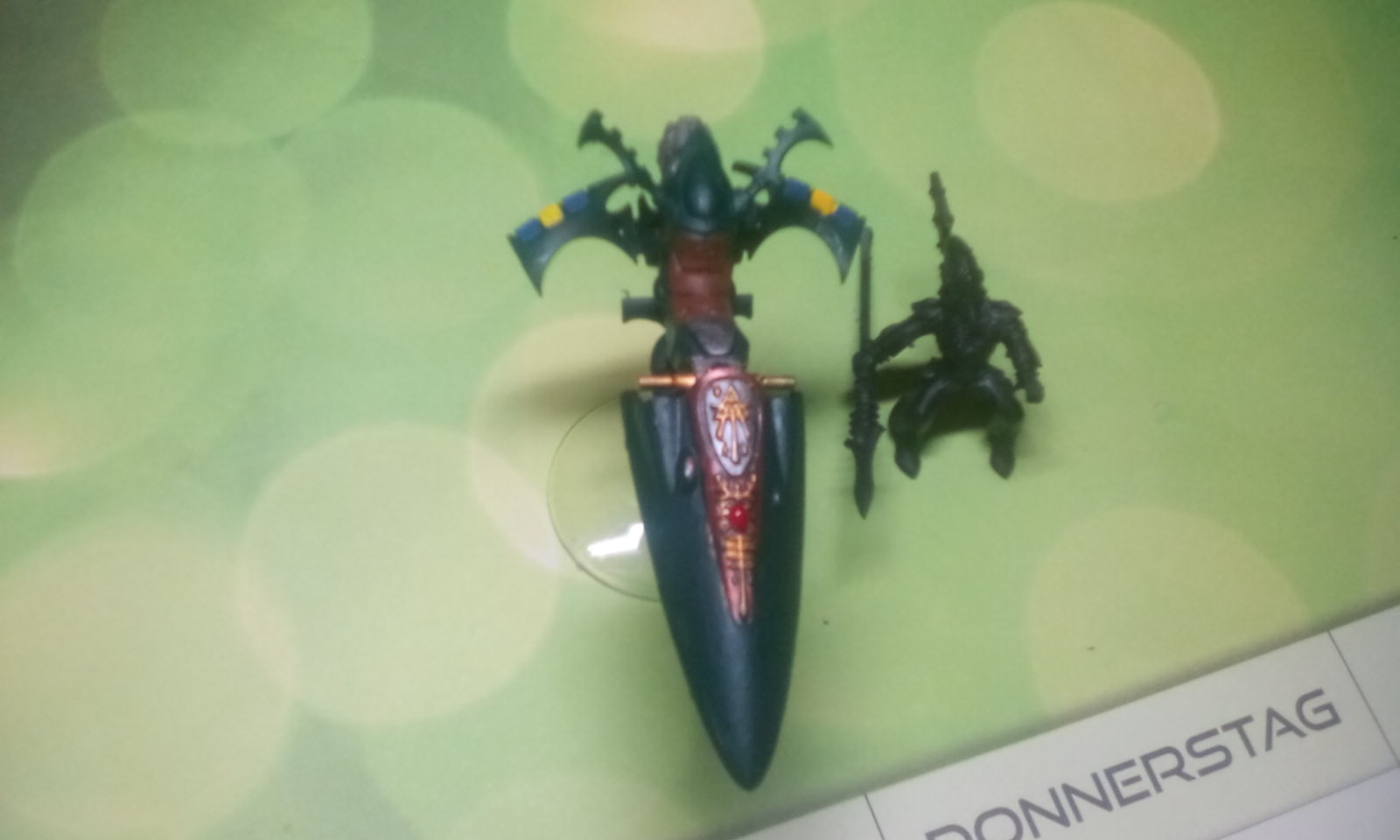 Abends saßen dann die Vokabeln bis auf Kleinigkeiten. Als er ins Bett ging legte ich im die Box auf seinen Schreibtisch. Sonntag Morgen um 8 als ich aufstand um mit dem Großen zu seinem nächsten Spiel zu fahren, war bereits ein Jetbike fertig. Mittags waren wir zu Essen eingeladen. Der Große und ich trafen dort wieder auf die anderen Drei. Dort wurde mir verkündet, dass die Bikes fertig sind. Nach einem kurzen wiederholen der Vokabeln am Nachmittag ging es an den Panzer. Der ist bis jetzt aber noch nicht fertig. Je nachdem wie der heutige Test ausfällt werde ich diese Woche wohl was zu grundieren haben oder auch nicht……