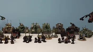Nicht ganz. Die von mir gebauten Fahrzeuge, die in Schwarz-Rot-Kupfer sind noch (lange) nicht fertig. Wobei die Bilder auch schon wieder überholt sind der linke Taurox hat diese Woche ordentlich Farbe abbekommen und die "Grauen Herren" wurden von Zeitdieben zu Ninjas umgesprayt ;)