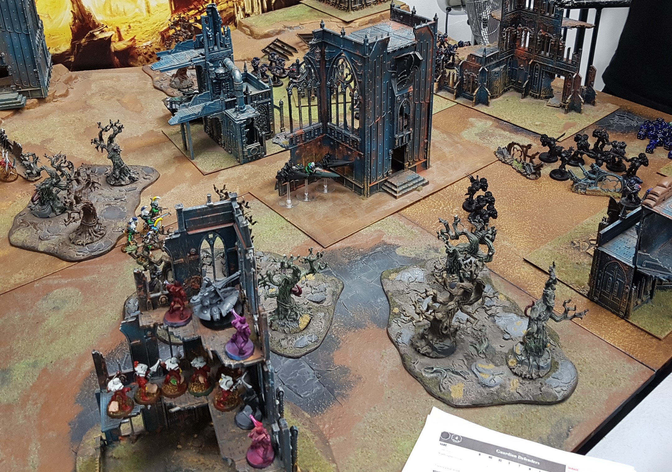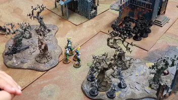 Der für mich beste Eldar war der Farseer der gut geschützt in einer Ruine stand. Der war zwar nie in Schmetterreichweite aber wirkte seine 2 anderen Zauber (wiederholen der misslungenen Treffer und Verwundungszauber) was dazu führte das der Ein oder Andere Chaosanhänger mehr ins Gras biss.