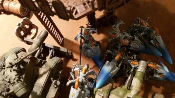 Der Pilot atmet erleichtert auf. Gerade will er eine Kurve fliegen als einer der beiden Käfer in nochmal attackiert und die Valkyrie explodieren lässt. Auch hier führt der Trümmerregen zu toten und verletzten Xenos. Es stinkt überall auf dem Schlachtfeld nach Treibstoff und verbranntem Chitin.