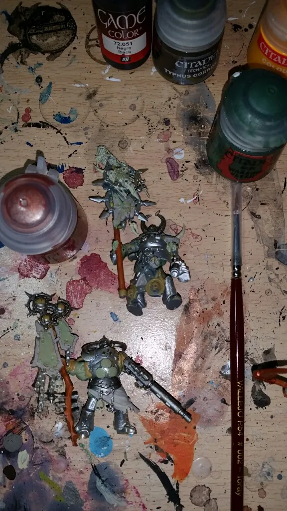 Was hast du den, bei dem Grün, für einen wash benutzt ? Das sieht alles noch bissel nach Grundfarbe aus . Würde dir hier nen dunkel grünen Wash (zb Vallejo green vehicles ) empfehlen , danach einfach über die erhabenen Stellen mit underhive ash drüber bürsten . Das würde den Minis die von Merrhok geforderte Tiefe verleihen. Die ganzen Wunden , mit bugmans glow , dann carroburg crimson , dann cadian fleshtone und am ende noch druchii violet bemalen.