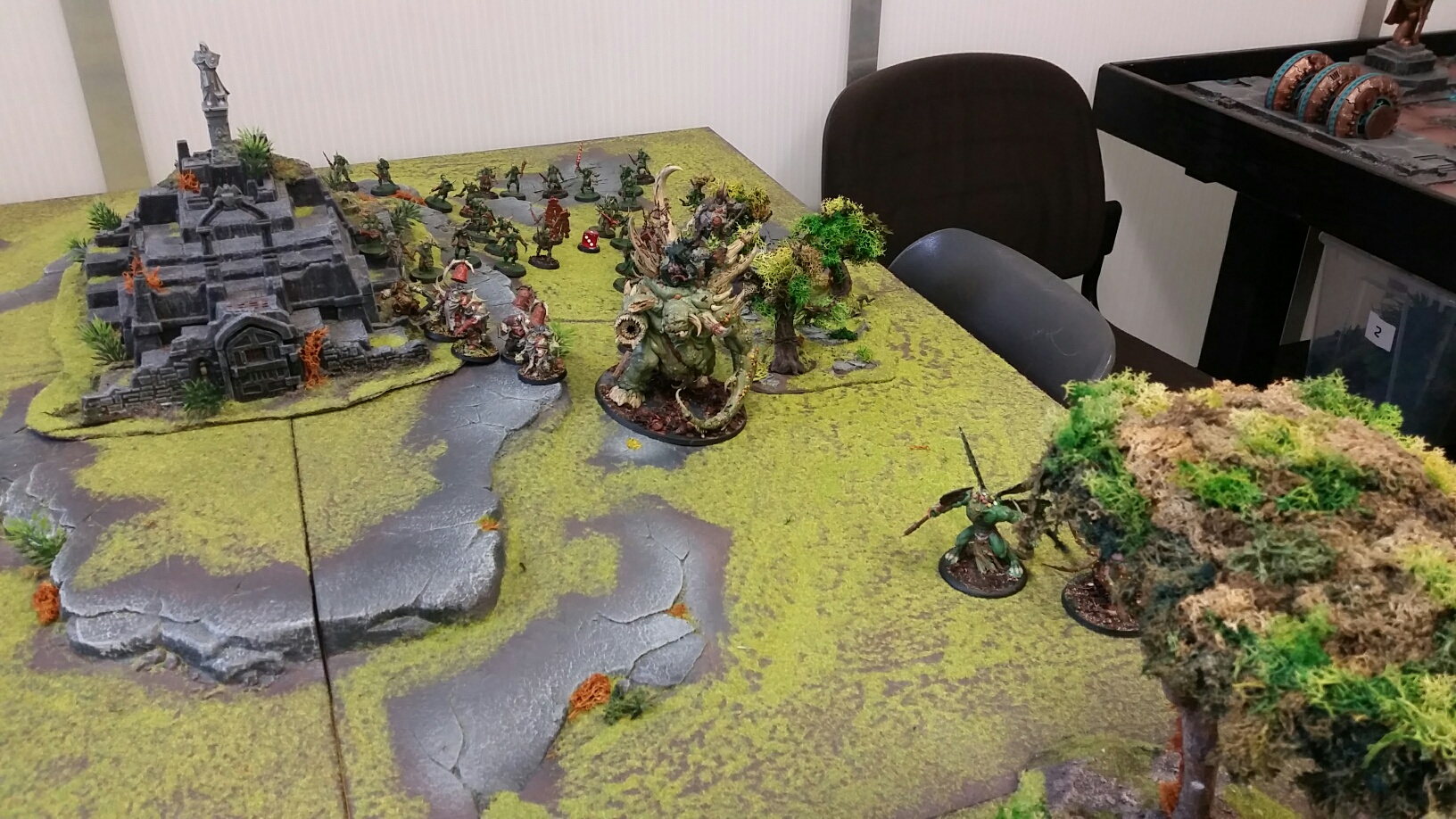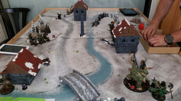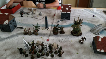 Tja eigentlich hat alles ganz gut geklappt. Lediglich eine kleine Blocker Einheit auf meinem 2. MZ hab ich vermisst aber bei 1250 Punktemuss man halt abstriche machen. Mit den Seuchenhütern hätte ich mich bereits in meiner ersten Runde vom Carnosaurier lösen sollen um aufs MZ zu gehen und der Glootkin hätte den Slan angehen müssen, naja. Alles in allem war ich recht zufrieden nur das mit den 6er und dem Rad. Naja.