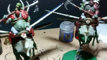 Die Pusgoly Blightlords (im folgenden PB genannt) sind praktisch BK auf einer Seuchendrohne und dazu hat/kann jeder 2. Eine Glocke tragen die auch ganz gut ist, leider nicht so gut trifft und nur eine Attacke hat. Mit ihren 7 Wounds pro Modell und dem FNP sind sie recht zäh, wirklich gut werden sie aber erst mit dem HoD Buff und ggf. einem Warshrine. Sie tragen auch die BK typischen Waffen die auf 6+ mehr Treffer produzieren, leider haben sie hier keinen Rend und bekommen darauf auch keinen Rend.