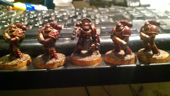 Ein Cataphracii Terminator Trupp der noch mit 5 weiteren ausgebaut wird und ein Legion Veteran Tactical Squad mit Schwebo und Melter samt Sarg mit E Schwert und Plasma Pistolle.