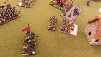 Tatsächlich hatte er keine Zombies am Start und statt Wiederbelebungszaubern eher offensive(Geschosse und "steal youth").Während ich in seinen Blutrittern die größte Bedrohung sah, machte ihm der Anblick meiner Iron Orc Horde sichtlich zu