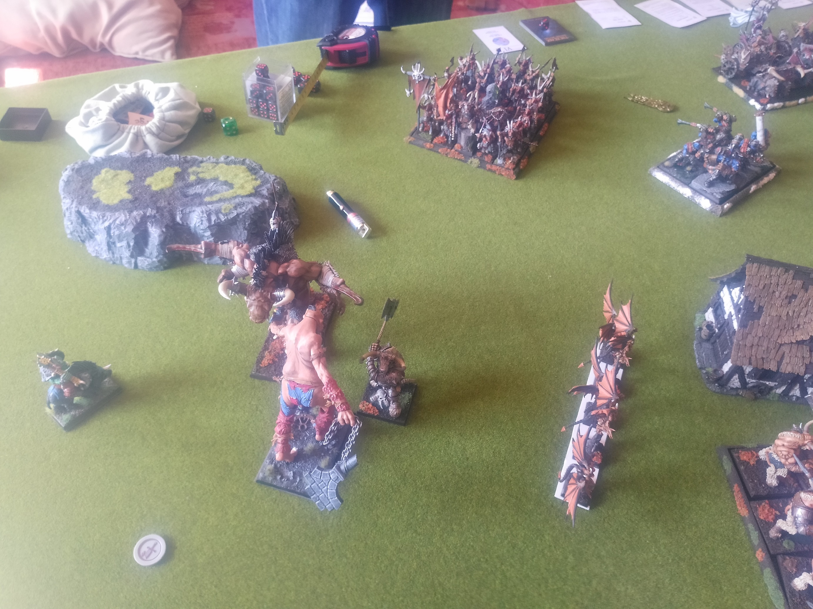 Die Blöcke (Eisenorks und Goblins hüben, Minos und wildhorns drüben)