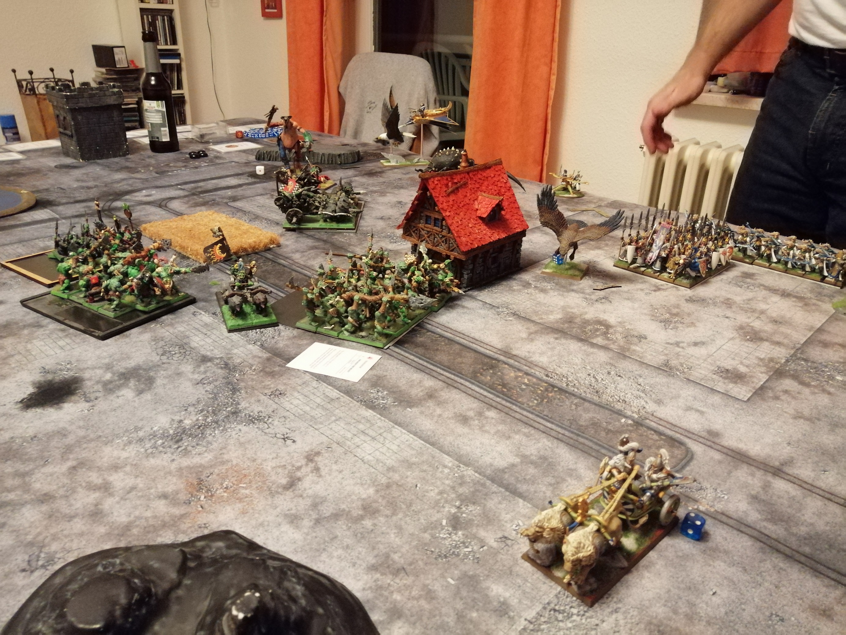 Saschas Hochelfen hatte ich mit meinen Orks beim letzten Mal(mit der drei Riesen-Liste)