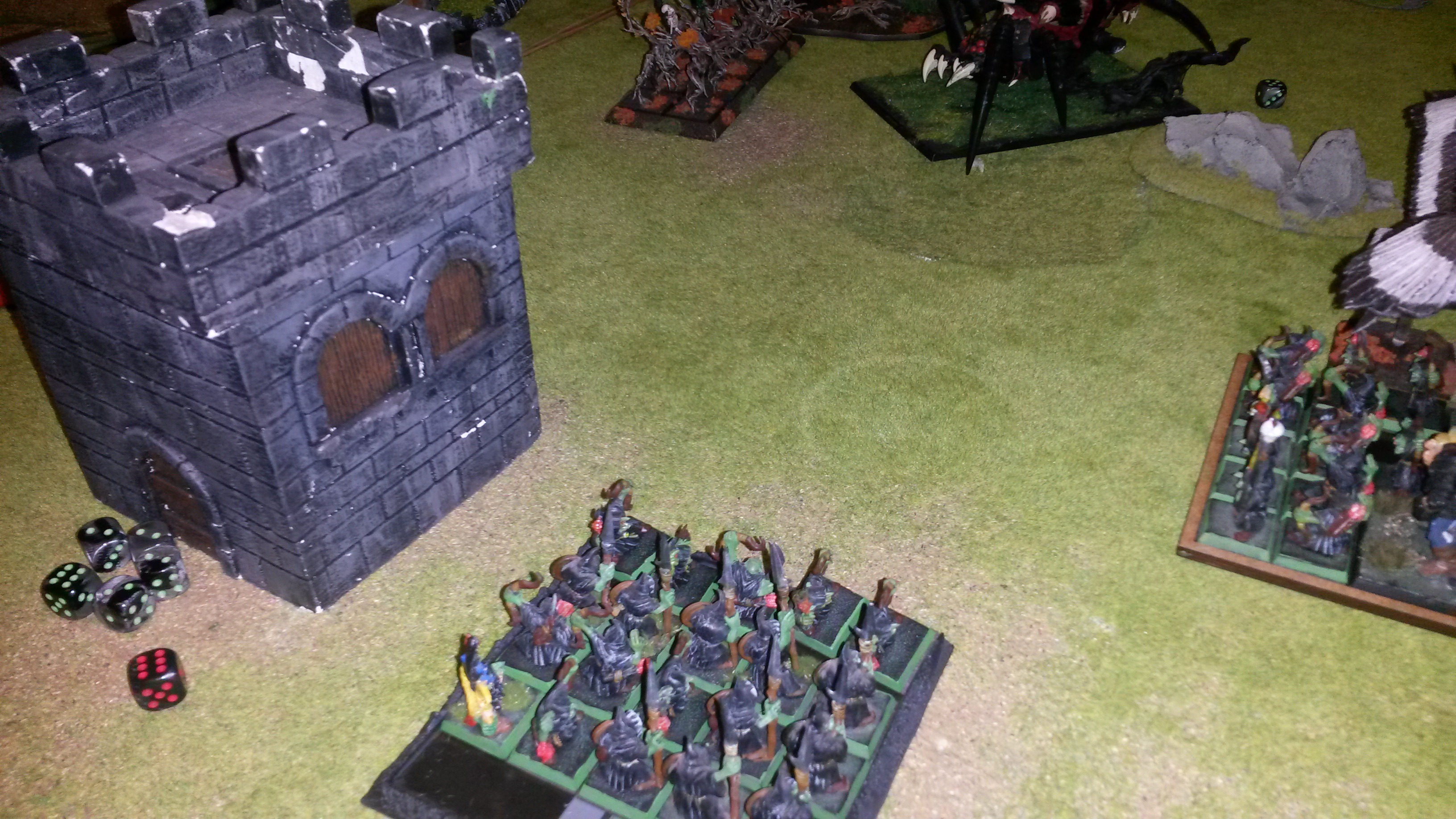 Front der Dryadenhorde. Den Zehnertrupp Scorerdryaden nehme ich per Combo-Charge mit Trollen und schwarzer Witwe:![]()