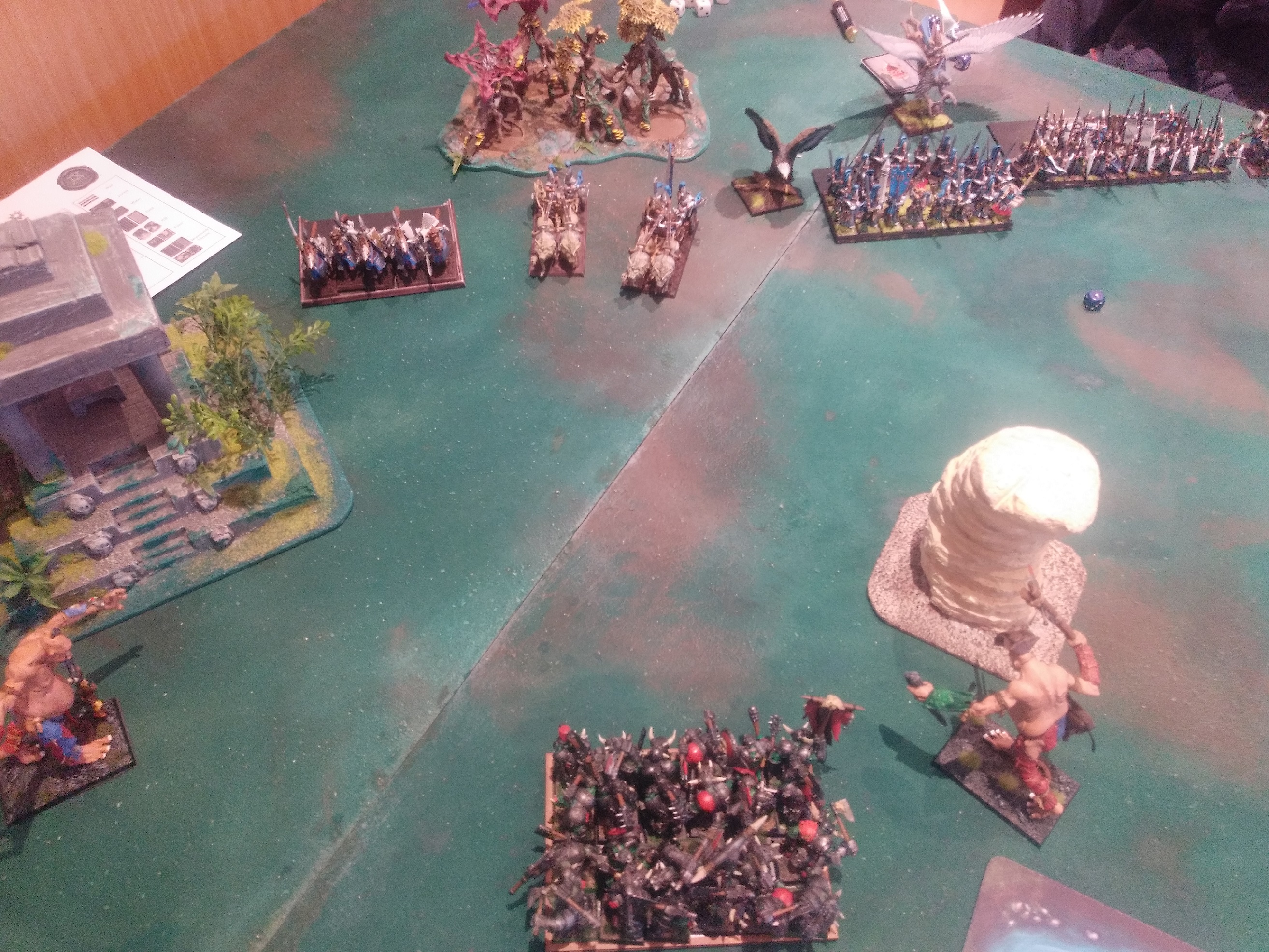 A.. an Stärke 4 Attacken, hier monströse Infanterie), dahinter Barbaren zu Fuß als Taxi für Magier 2 und außen